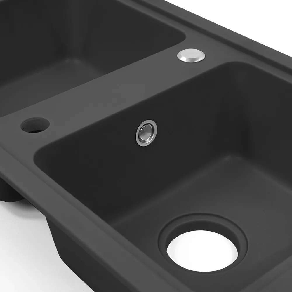 Tia Szögletes Fekete Gránit Mosogató - Két Medencével a Kényelemért és Eleganciáért