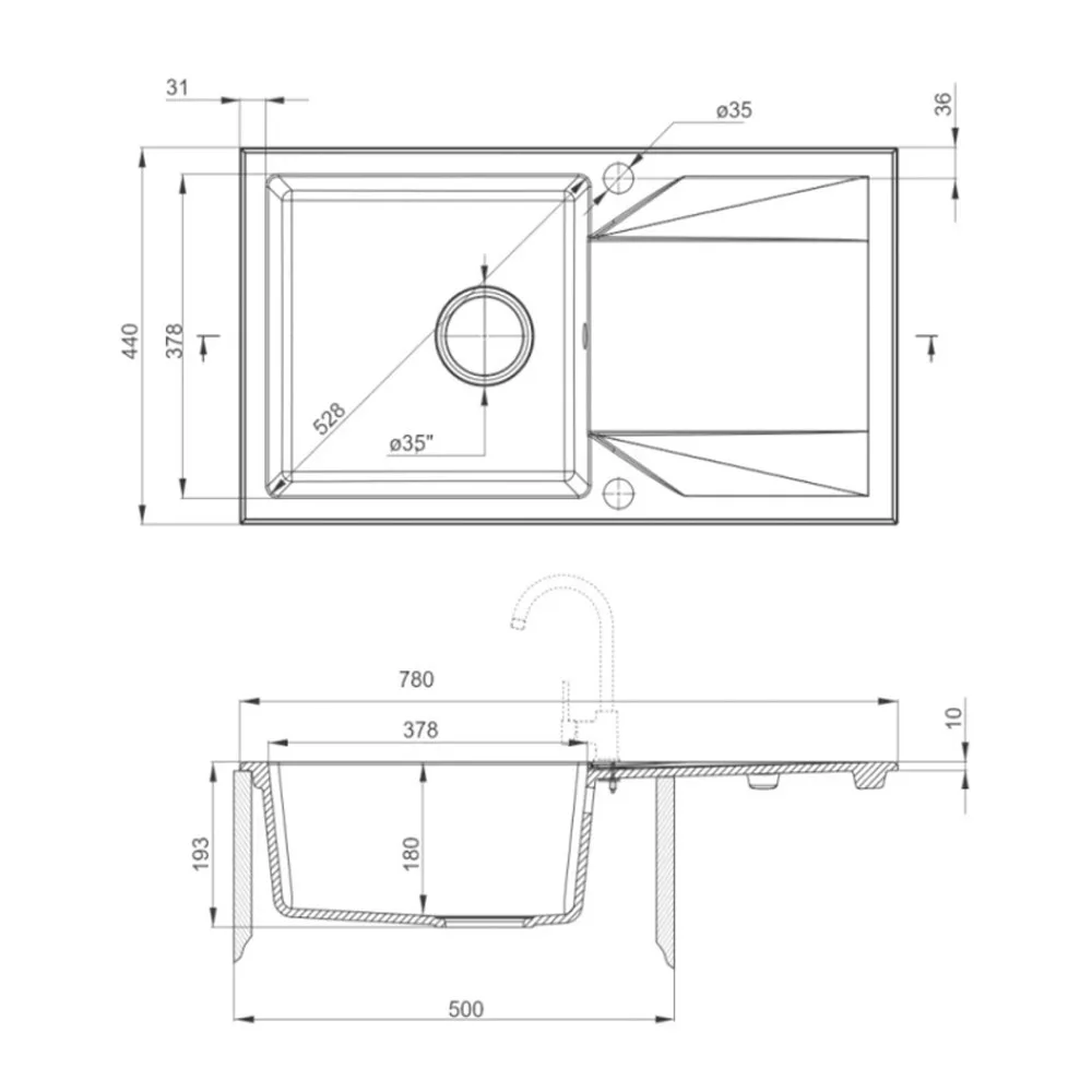A Gori szögletes egy medencés gránit mosogató fekete színben egyaránt kielégíti a minőségi és stílusigényeket a konyhádban. A gránit kompozit anyag tökéletes kombinációja a kvarc homoknak és a gyantáknak, ami kiváló ütésállóságot, hőállóságot (akár 250°C-ig), elszíneződés- és termikus sokkállóságot biztosít az EN 13310 európai szabvány szerint.