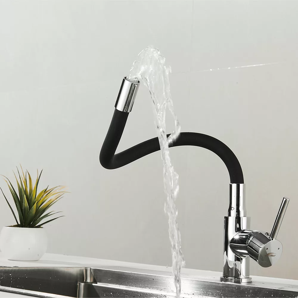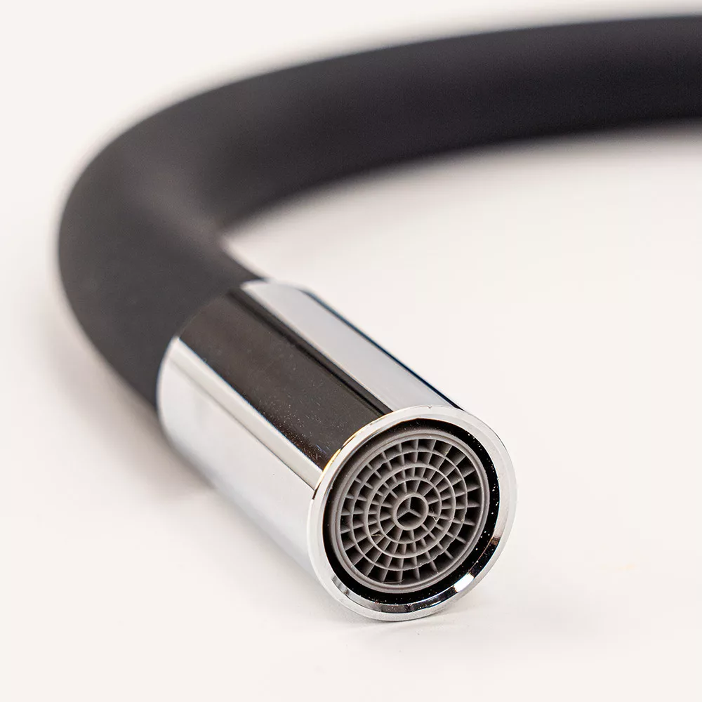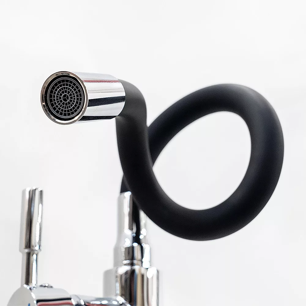 A szilikon bevonatú flexibilis cső lehetővé teszi, hogy a kifolyó formáját és magasságát szabadon alakítsd.