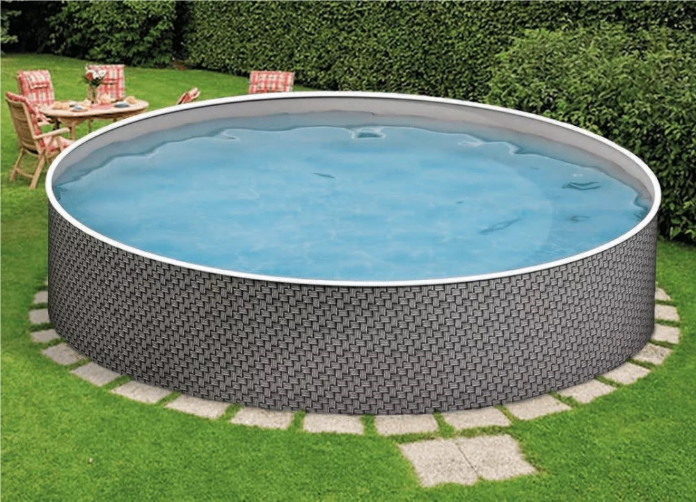 Élvezd a nyarat az Azuro Fémpalástos medencével – 5,0 m átmérőjű, szürke, kör alakú medence, rattan mintázattal, 1,2 m magas kialakítással, amely tökéletes a családi hűsöléshez és baráti összejövetelekhez! Strapabíró horganyzott acélfala és 7 rétegű falazata biztosítja a hosszú élettartamot, miközben ellenáll a klórnak, UV-sugárzásnak és mechanikai hatásoknak. A 0,5 mm vastag fólia extra tartósságot és stabilitást nyújt.