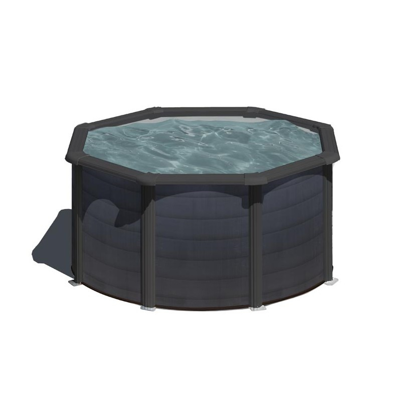 Gre medence galvanizált grafit, acélfalú, PVC belső fóliás medence, amely besüllyesztés nélkül a talajszintre telepíthető, de akár földbe is süllyeszthető. Megfelelő talajelőkészítést követően házilag is egyszerűen telepíthető. Az alátámasztásoknál teherhordó aljzat szükséges (50x50 cm-es beton járólap.