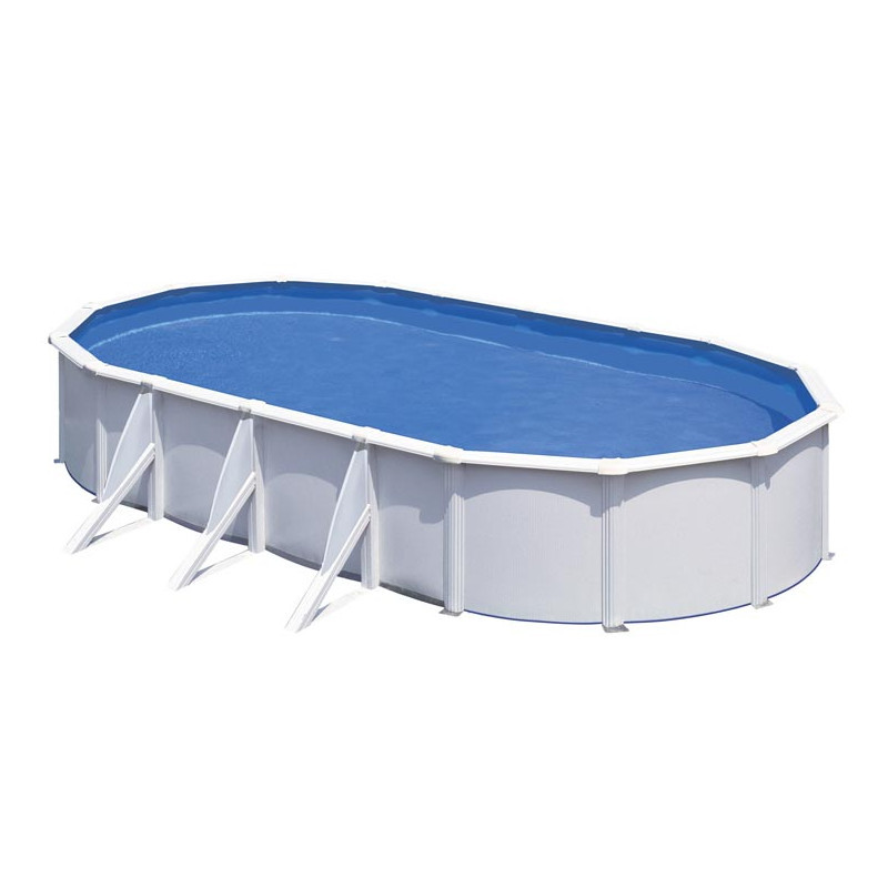 Gre ovális medence fehér, galvanizált acélfalú, PVC belső fóliás medence, amely besüllyesztés nélkül a talajszintre telepíthető, de akár földbe is süllyeszthető. A függőlegesen bordázott oldalfal erős ellenállást és stabilitást biztosít. Megfelelő talajelőkészítést követően házilag is egyszerűen telepíthető. Az alátámasztásoknál teherhordó aljzat szükséges (50x50 cm-es beton járólap). A medence felső pereme 15 cm, az oldalmerevítők 12 cm szélesek. Az ovális medencéknél az oldaltámaszok helyigénye kb. + 2 m (oldalanként kb. 1 m)