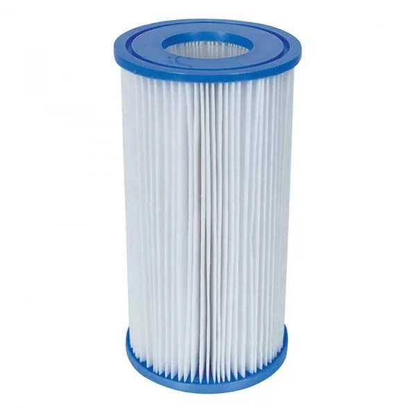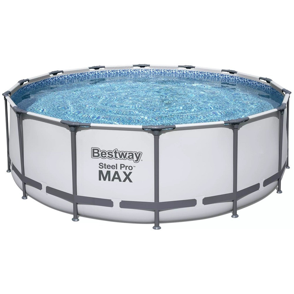 Fémvázas medencetest, 3 m³/h teljesítményű papírszűrős vízforgatóval. Az erős PVC medence testet csőváz tartja, amelyek a testen kialakított füleken keresztül tolva merevítik a szerkezetet.