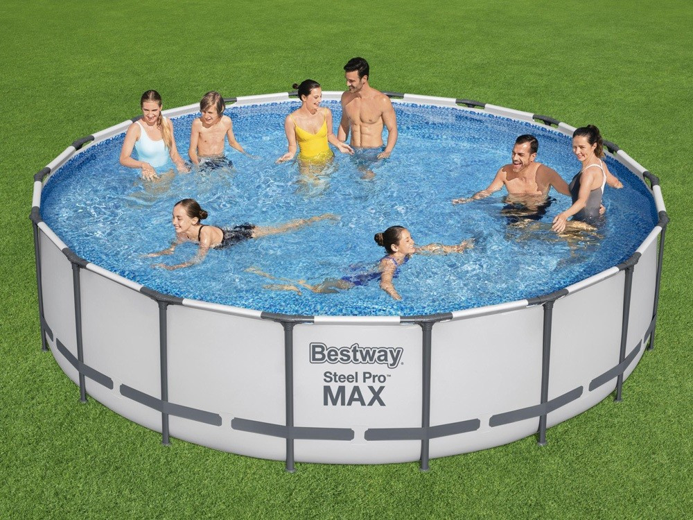 Fémvázas medencetest, 6 m³/h teljesítményű papírszűrős vízforgató szükséges hozzá. Az erős PVC medence testet csőváz tartja, amelyek a testen kialakított füleken keresztül tolva merevítik a szerkezetet.