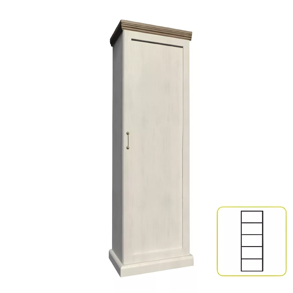 Szekrény S1D, egyajtós, polcos az elegáns provence-i stílusú ROYAL elemes bútorcsaládból