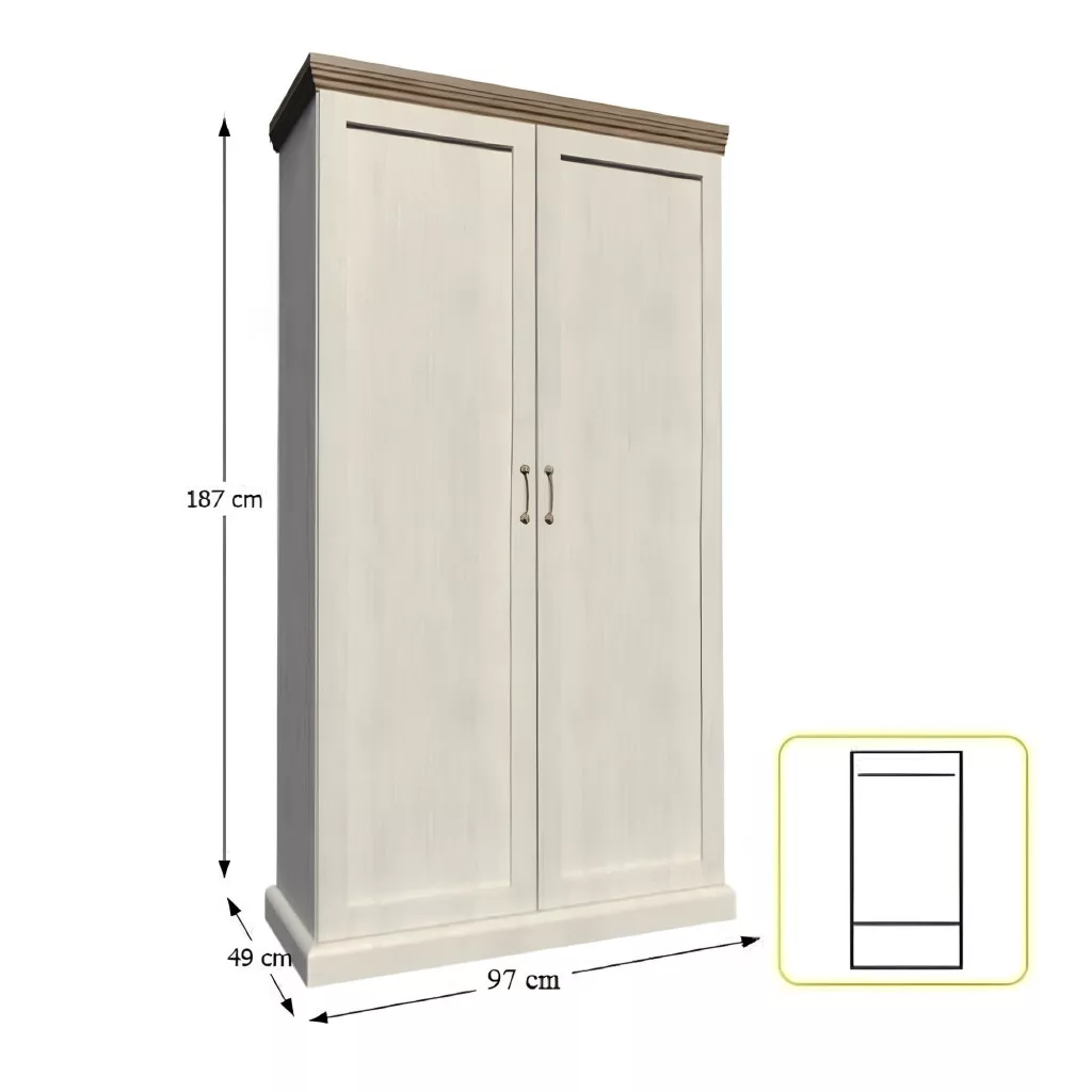 Akasztós szekrény S2D egy polccal az elegáns provence stílusú-i ROYAL elemes bútorcsaládból