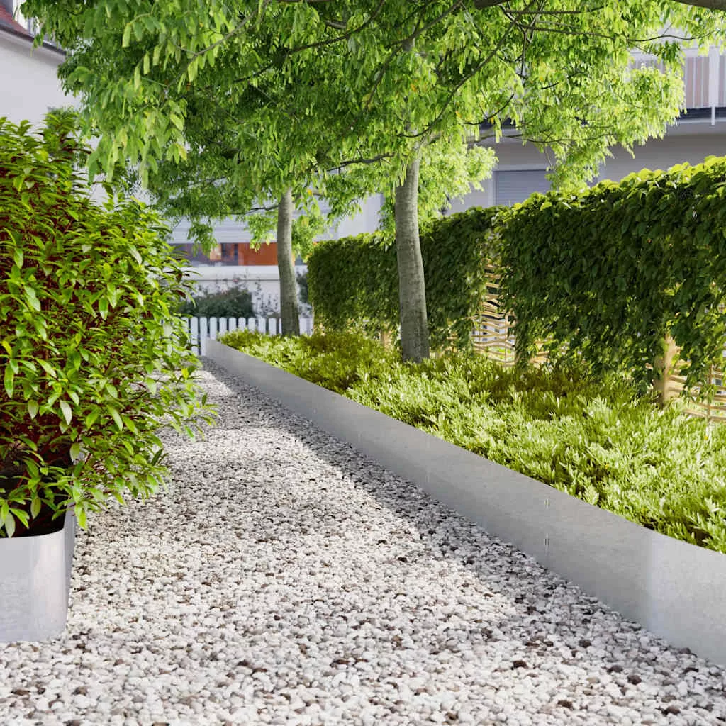 Ezek a gyepszegélyek egyértelmű határokat hoznak létre a kertek, ösvények, gyepfelületek és udvarok számára, megakadályozva, hogy a fű gyökerei átterjedjenek a virágágyásokra, és vizuális bájt kölcsönöznek a tájnak.