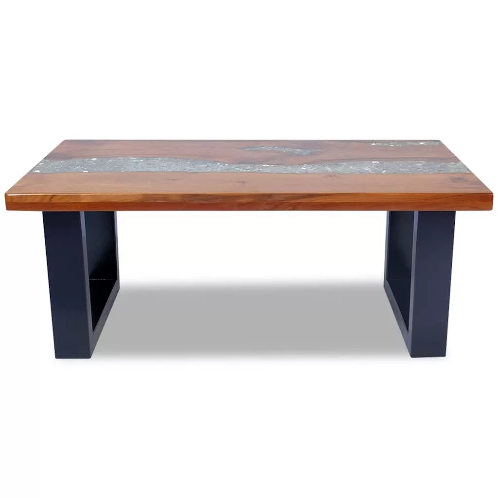 Ez a tömör tikfából és mangófából készült, átlátszó gyantázott felületű gyönyörű dohányzóasztal rusztikus bájával igazán szemet gyönyörködtető. Téglalap alakú asztallapja stabil és biztonságos felületet biztosít, amelyen az italokat, vázákat, gyümölcsös tálakat vagy díszeket lehet elhelyezni. A dohányzóasztal kisasztalként is használható.