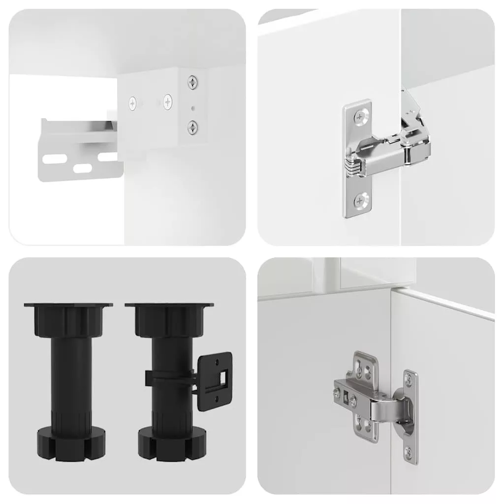 - Állítható lábak: Az alsó szekrények állítható lábakkal rendelkeznek, amelyek magassága a konyha elrendezésének megfelelően állítható.