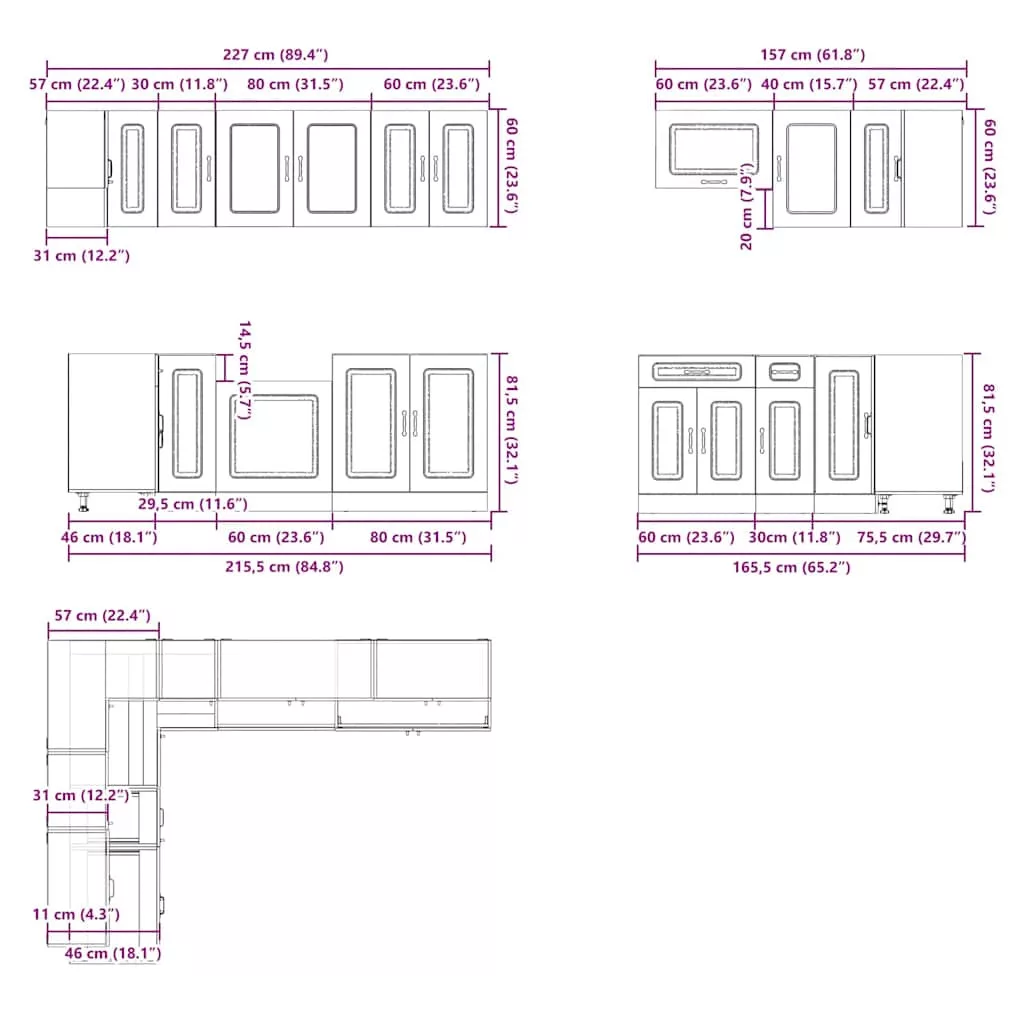 - Bőséges tárolóhely: A konyhaszekrénykészlet számos rekesszel rendelkezik, és elegendő helyet kínál tálak, tányérok, edények és egyéb konyhai eszközök tárolására.