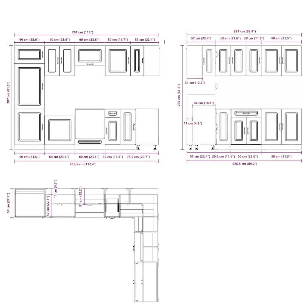 - Bőséges tárolóhely: A konyhaszekrény-garnitúra számos rekesszel rendelkezik, és elegendő helyet kínál tálak, tányérok, edények és egyéb konyhai eszközök tárolására.