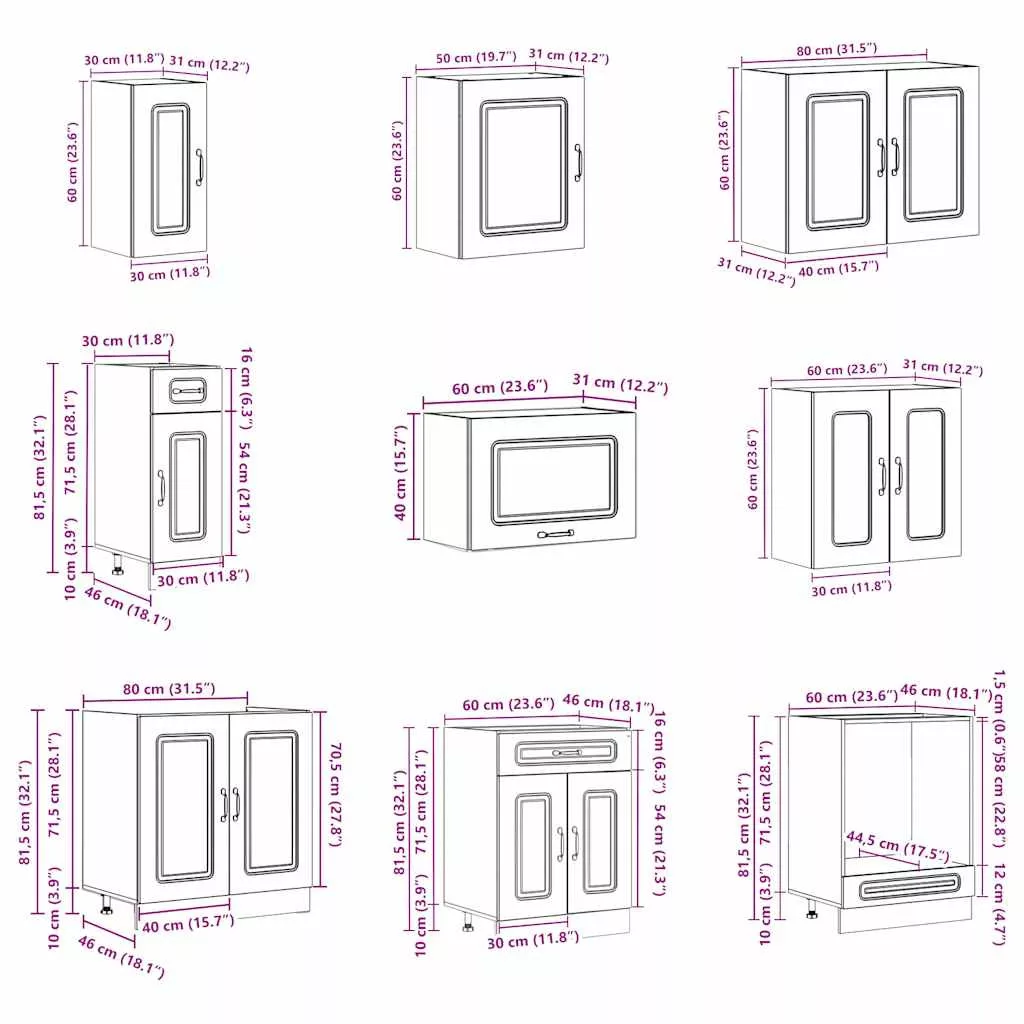 Ez a 14 darabos konyhaszekrény-garnitúra elegáns kialakításával optimalizálja a konyha terét, és bőséges tárolóhelyet biztosít személyes tárgyainak!