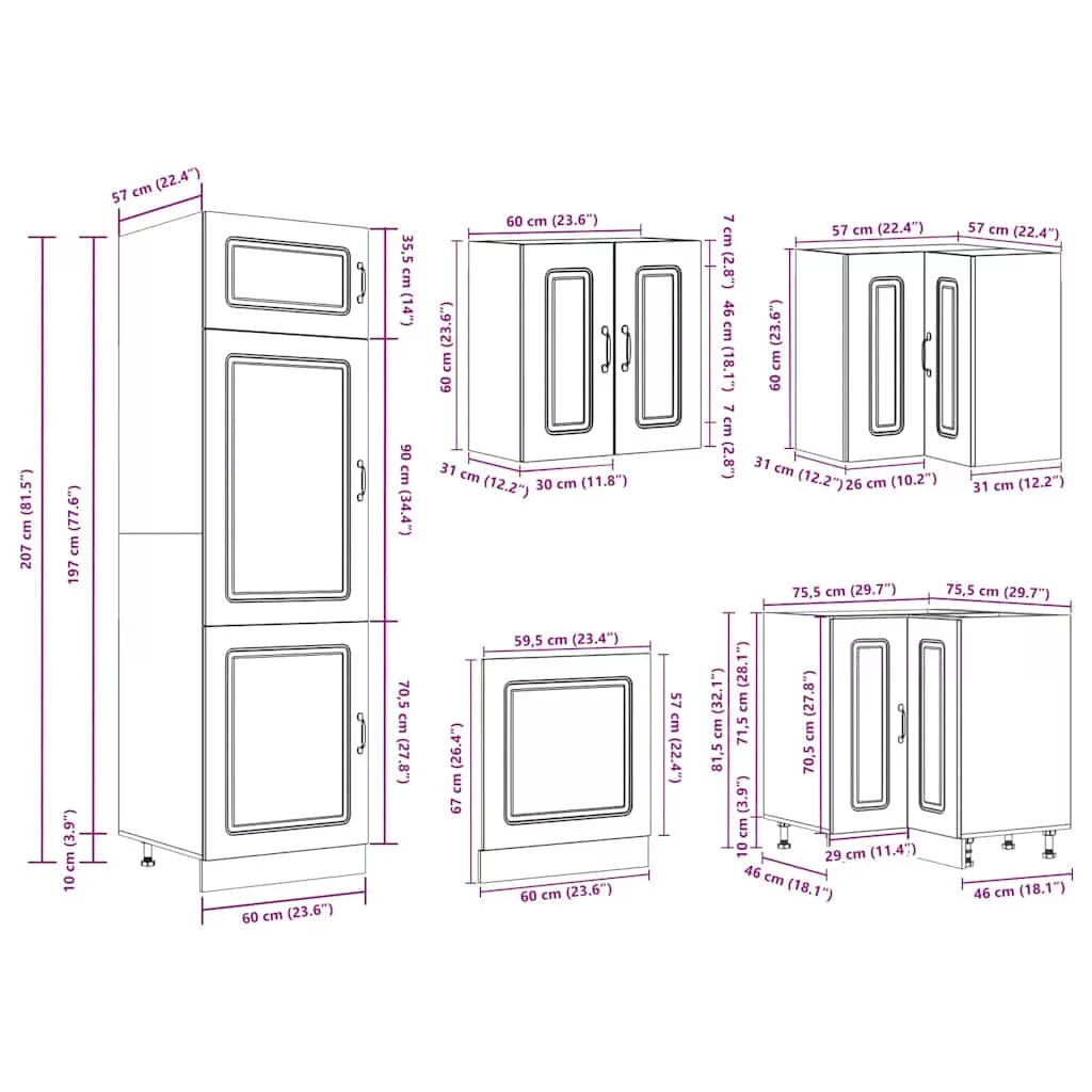 - 1 x konyhai sarokszekrény: 75,5 x 75,5 x 81,5 cm (Sz x D x K)
