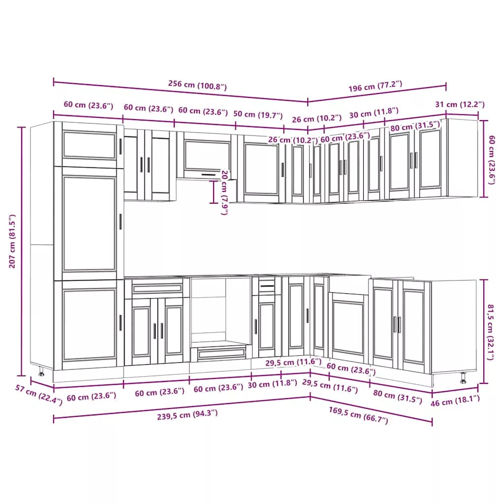 - 1 x konyhai sarokszekrény: 75,5 x 75,5 x 81,5 cm (Sz x D x K)