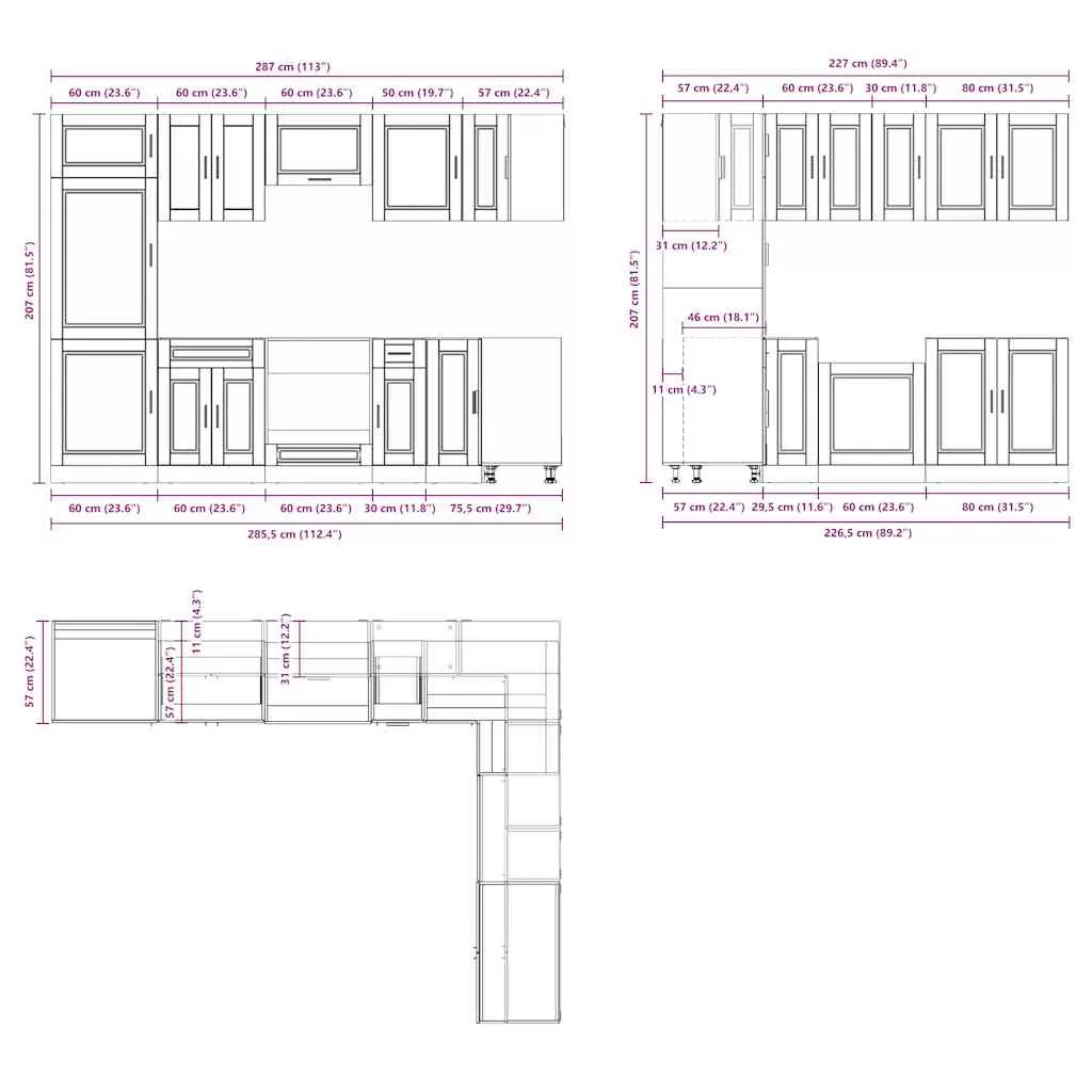 - Bőséges tárolóhely: A konyhaszekrény-garnitúra számos rekesszel rendelkezik, és elegendő helyet kínál tálak, tányérok, edények és egyéb konyhai eszközök tárolására.