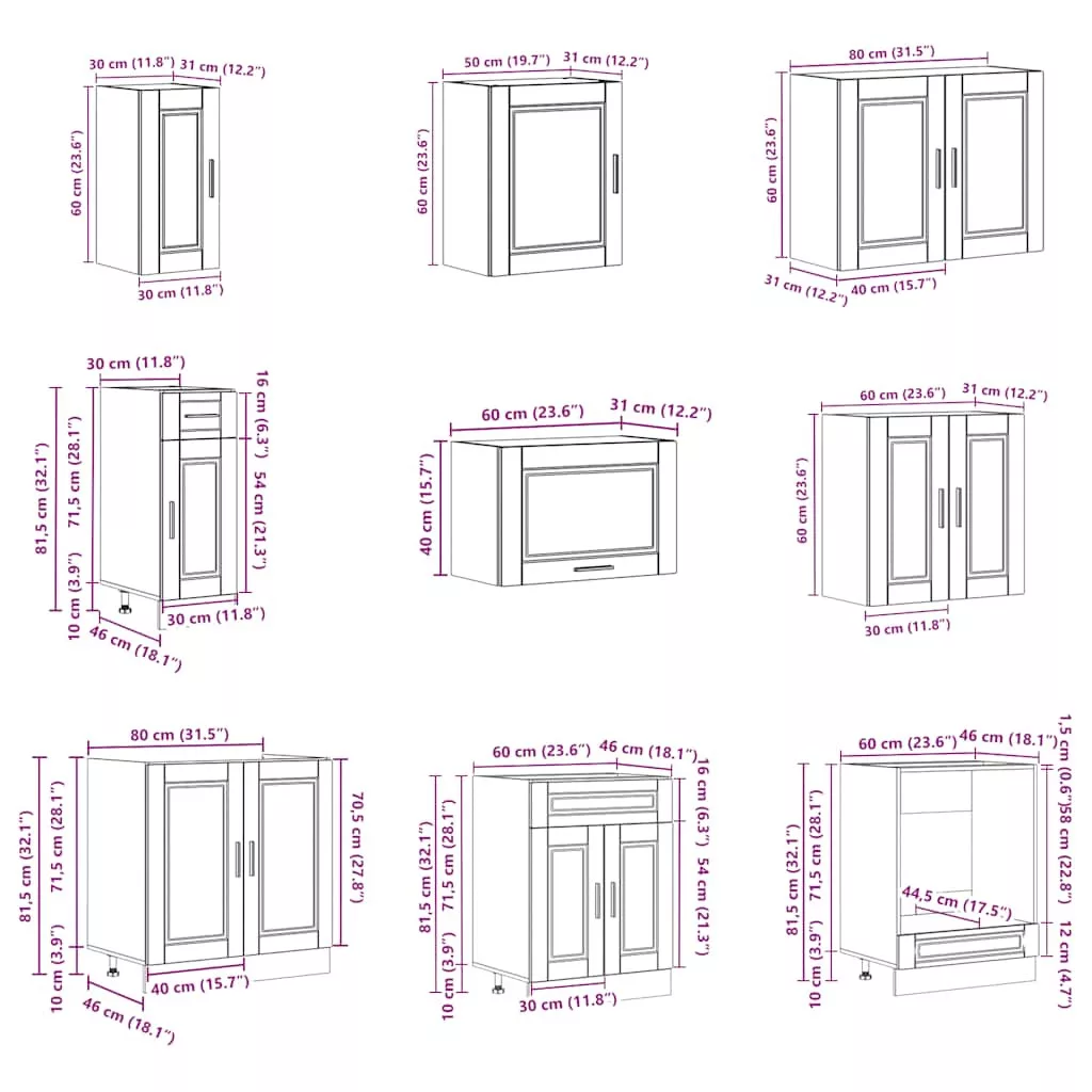 Ez a 14 darabos konyhaszekrény-garnitúra elegáns kialakításával optimalizálja a konyha terét, és bőséges tárolóhelyet biztosít személyes tárgyainak!