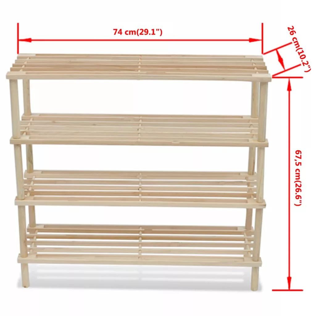 Ez a 4-szintes fa cipőtartó tisztán és rendezetten, a padló fölött tartja kedvenc cipőit. Elhelyezheti az ajtó bejáratánál, vagy bárhol máshol, ahol a cipőit jól szervezett módon szeretné tárolni.