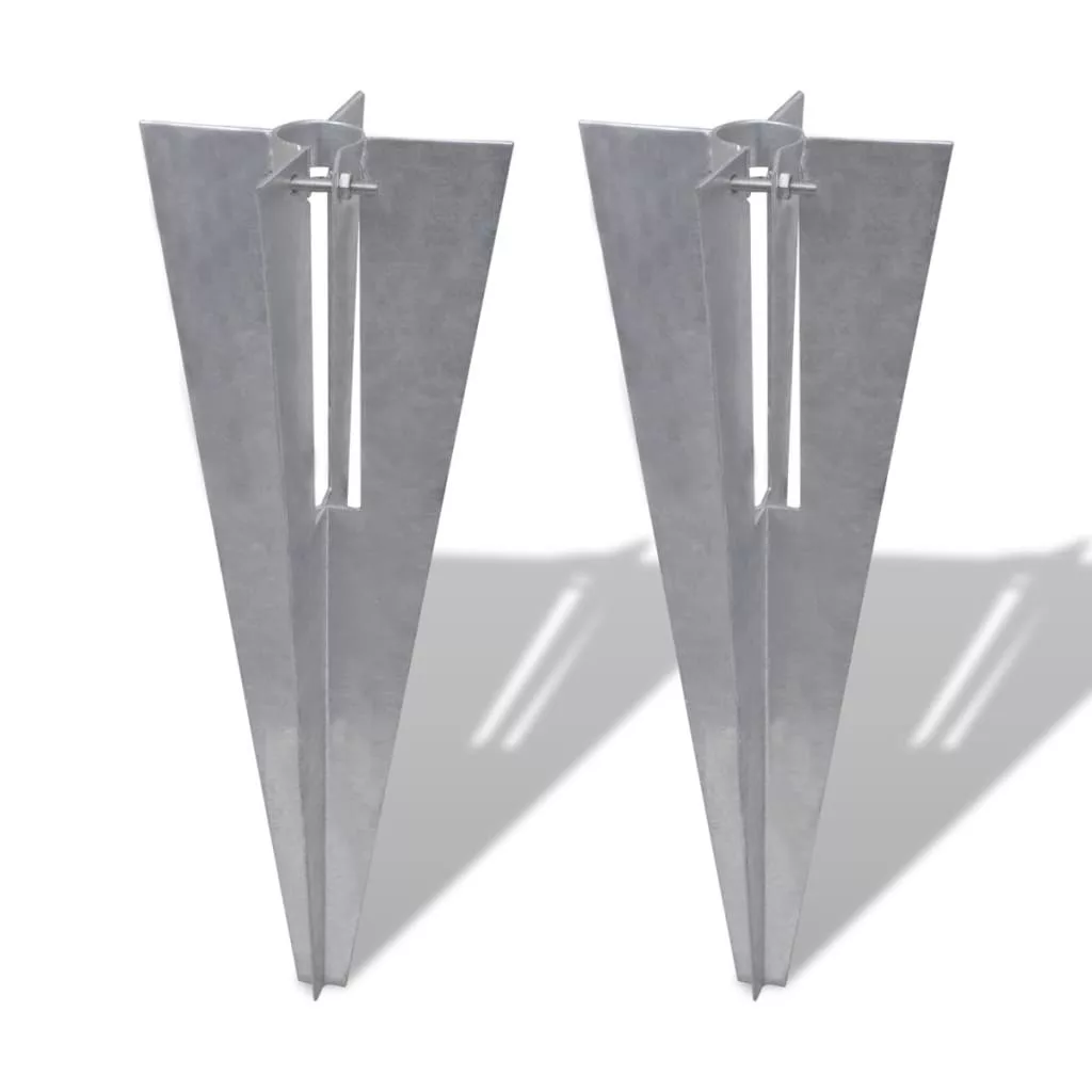 Ez a 2 kiváló minőségű tüske az egyenes oszlopok rögzítéséhez elengedhetetlenek. A tüskék cinkbevonatúak, vagyis rozsdamentesek, ezáltal biztosítva a hosszútávú használatot.