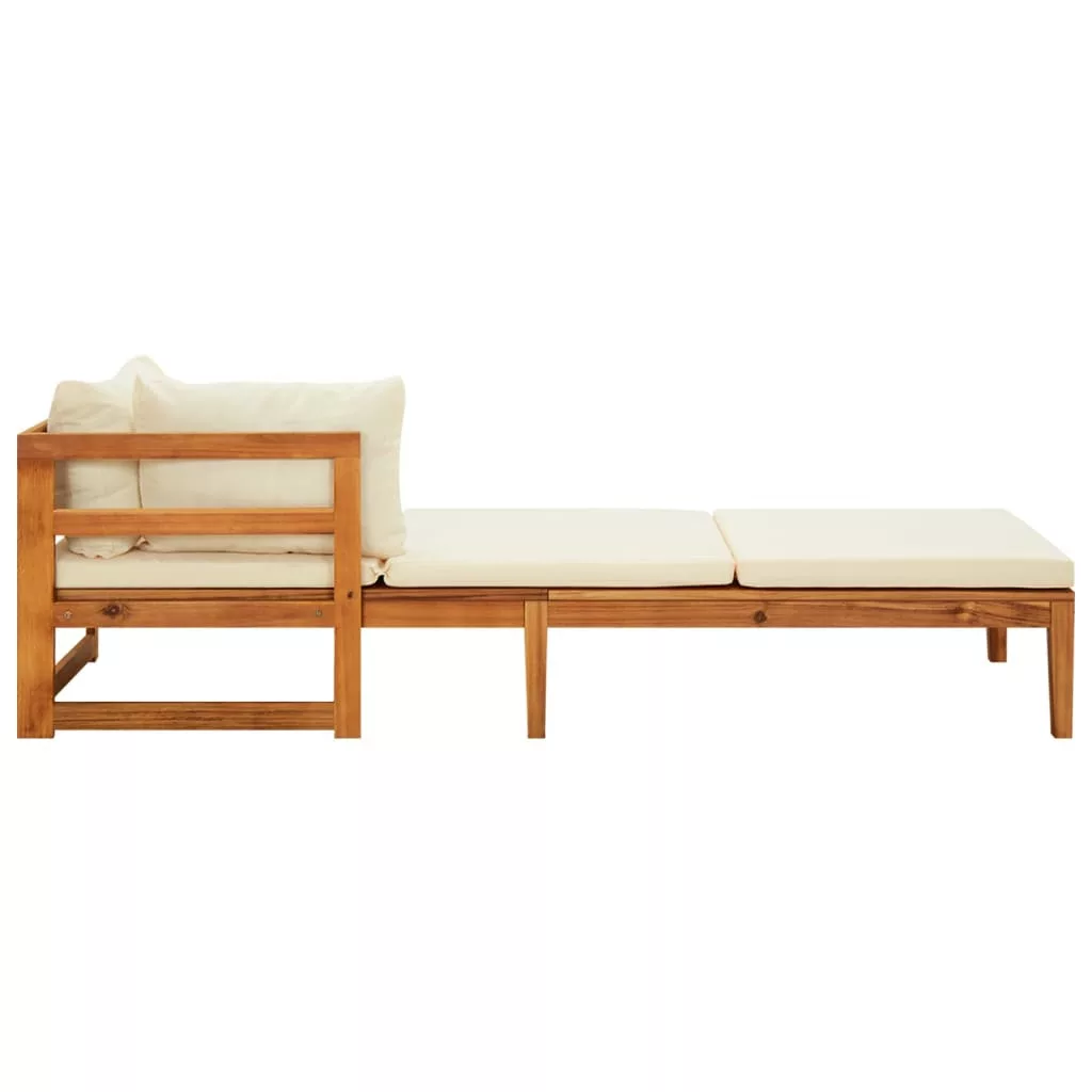 A kerti napozóágy tömör akácfából, egy sűrű erezetű keményfából készült. Ez a gyönyörű kialakítású kültéri napágy stabil, tartós és szemet gyönyörködtető. A kiváló kézműves munkának és a gyönyörű faerezetnek köszönhetően minden darab kissé eltér a többitől. A mellékelt párnák fokozzák a kényelmet pihenés közben. A kartámasz a bal és jobb oldalra is felszerelhető.