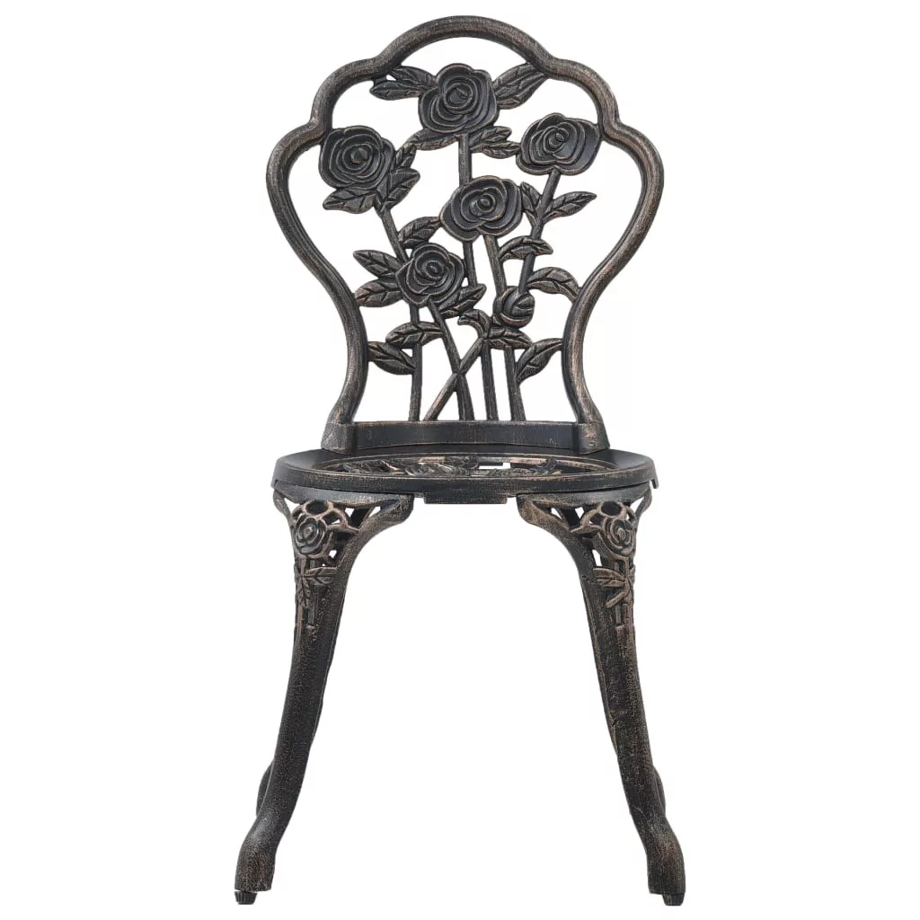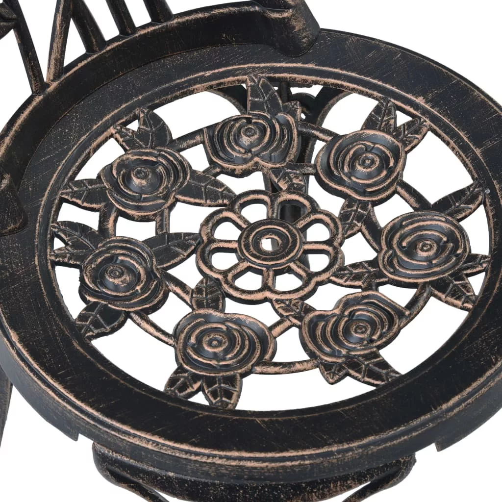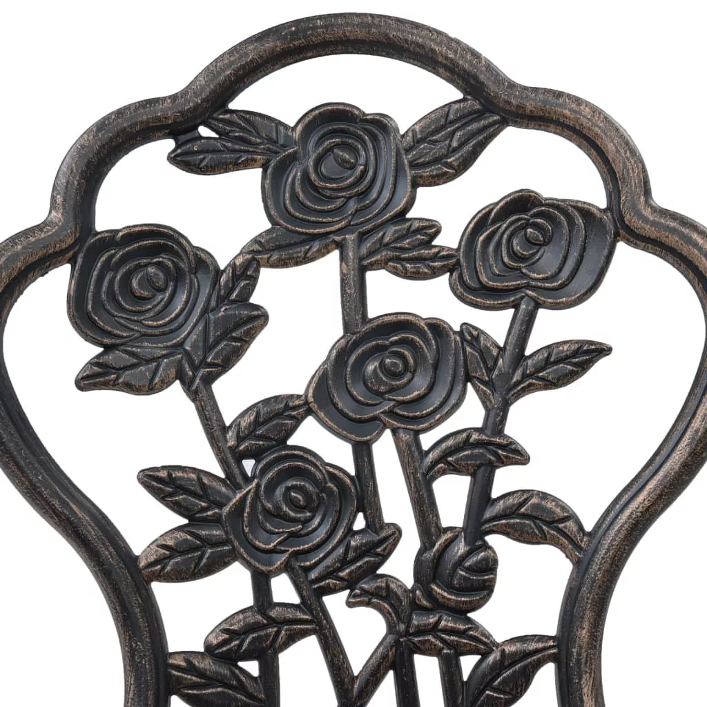 Ez a bisztrószett öntött alumíniumból készült, így időjárásálló és rendkívül tartós. Öntöttvas lábai tovább növelik a szett szilárdságát. Kidolgozott virágmintájának köszönhetően romantikus hangulatot csempész bármely kertbe, verandára vagy melegházba.