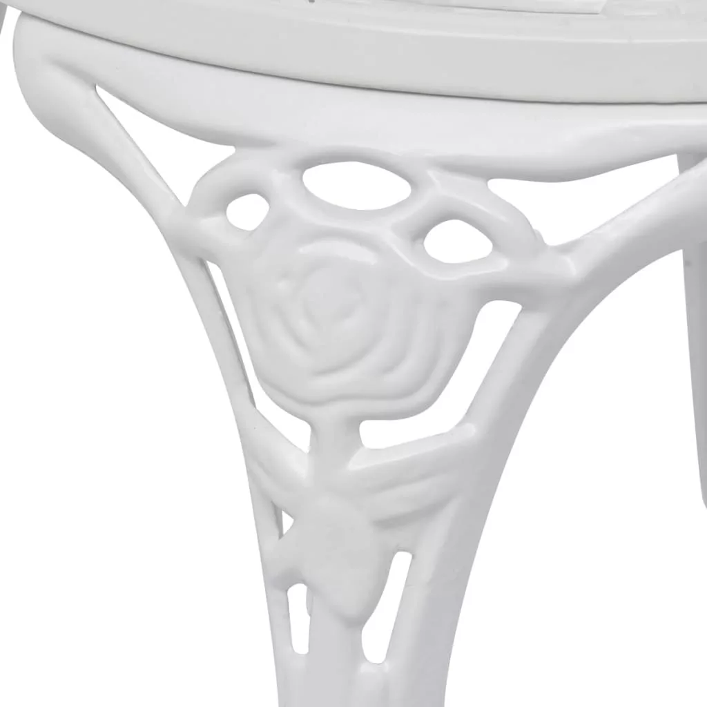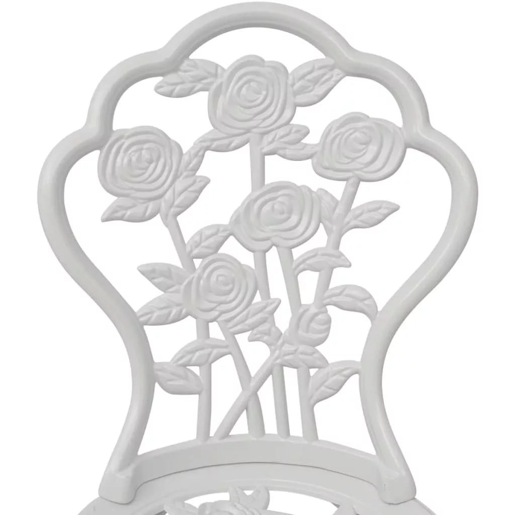 Ez a bisztró szett kiváló minőségű öntött alumíniumból készült, így időjárásálló és rendkívül tartós. Öntött vas lábai tovább növelik a szett szilárdságát. Kidolgozott virágmintájának köszönhetően romantikus hangulatot csempész bármely kertbe, verandára vagy melegházba.