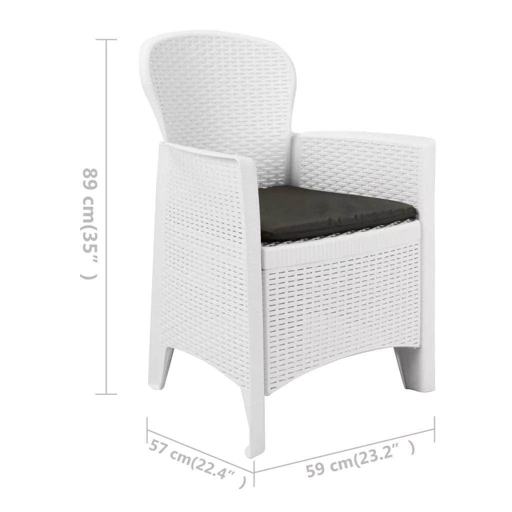 A csomag 2 műanyag széket és 2 párnát tartalmaz.