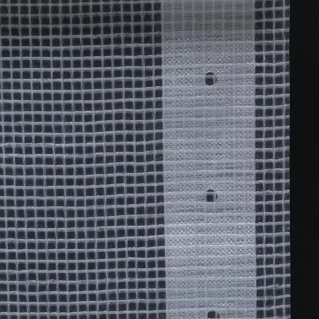 A melegház pótfólia kis sűrűségű PE-szövetből készült, és nagy sűrűségű PE-hálóval van megerősítve, így szakadás-, víz- és UV-álló. A pót takaróponyva mindkét szélére 7 cm-es PE-szalagokat szőttek, melyeket a könnyebb rögzítés érdekében lyukakkal láttak el.