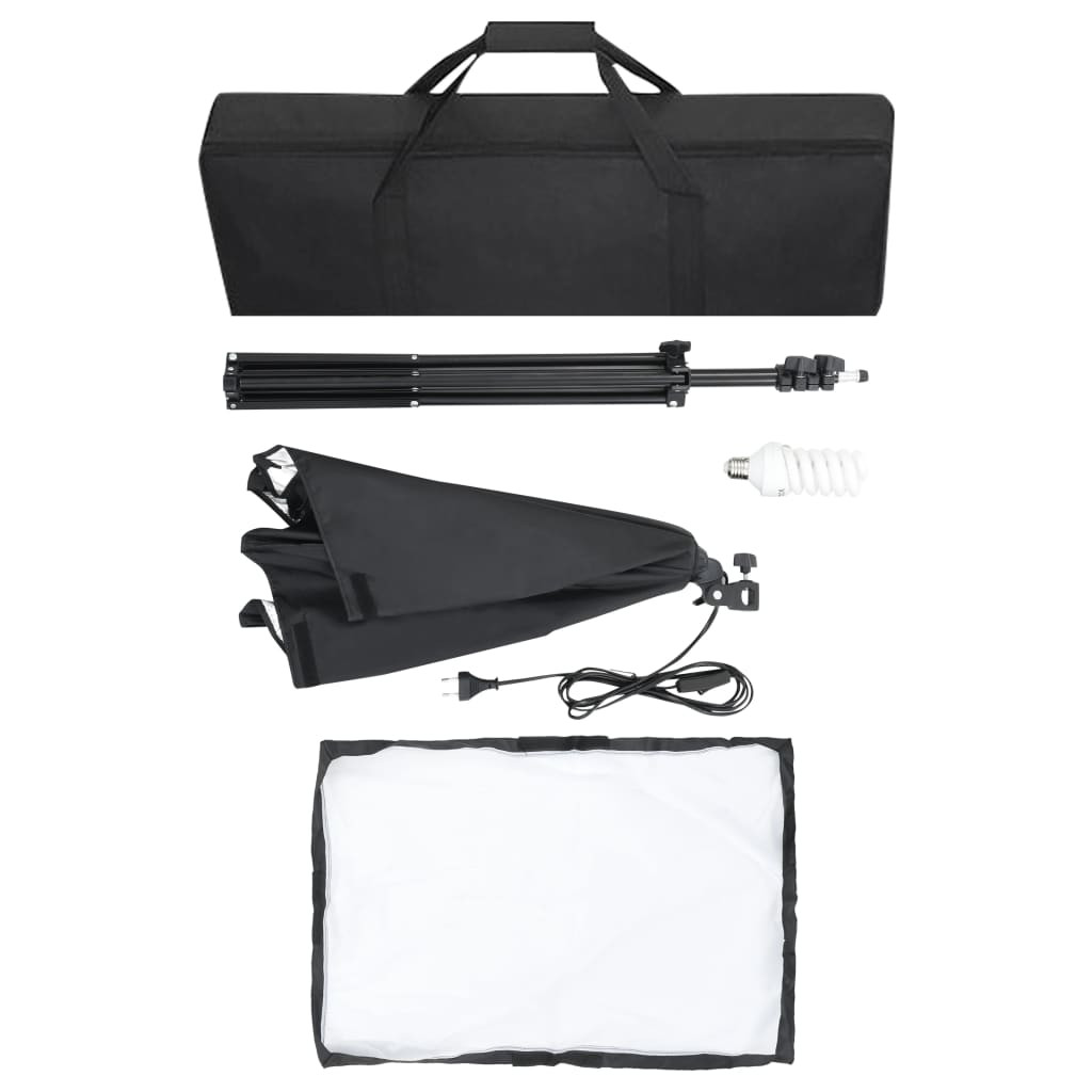 A szállítmány 2 softboxot, 2 háromlábú állványt, 2 izzót és 1 hordtáskát tartalmaz.