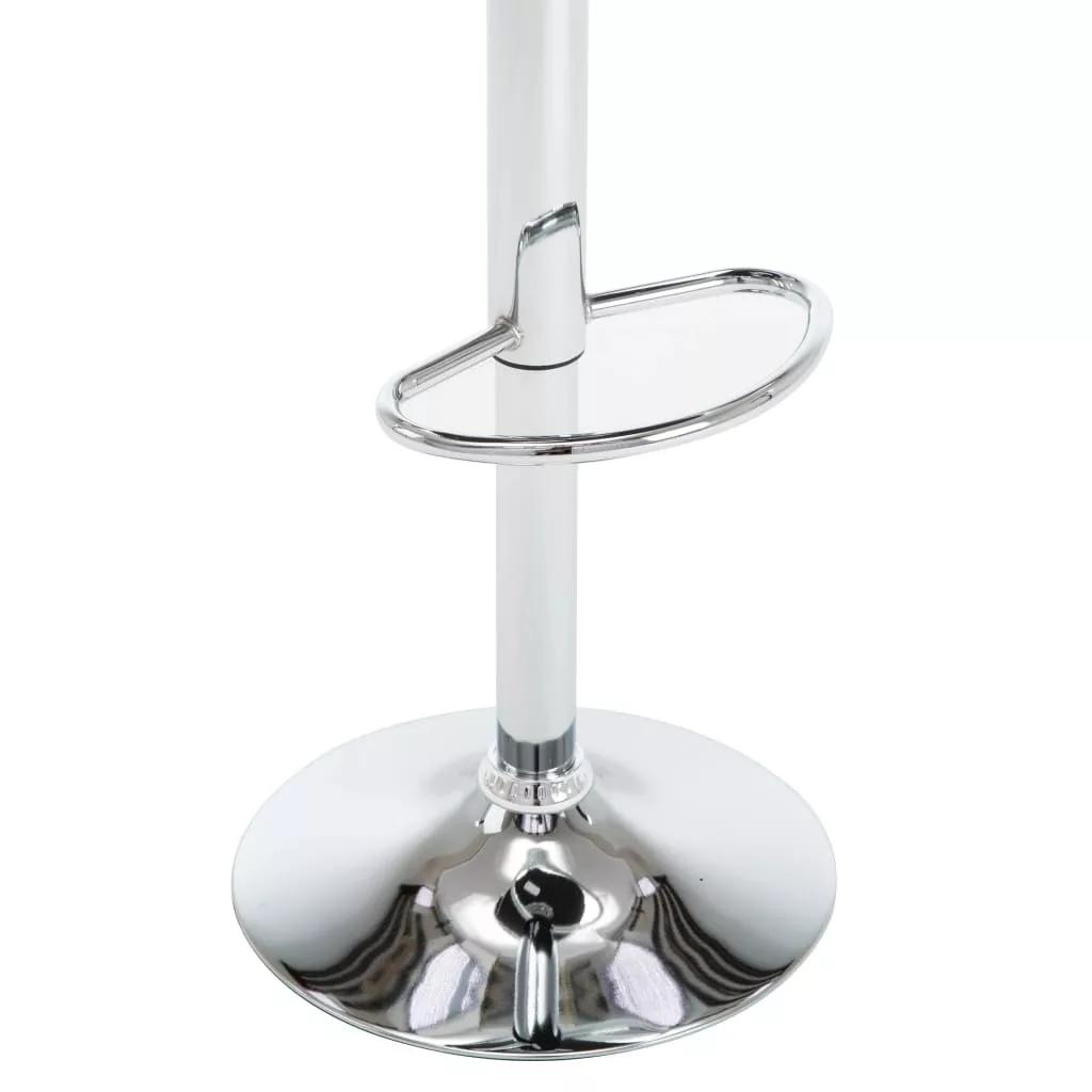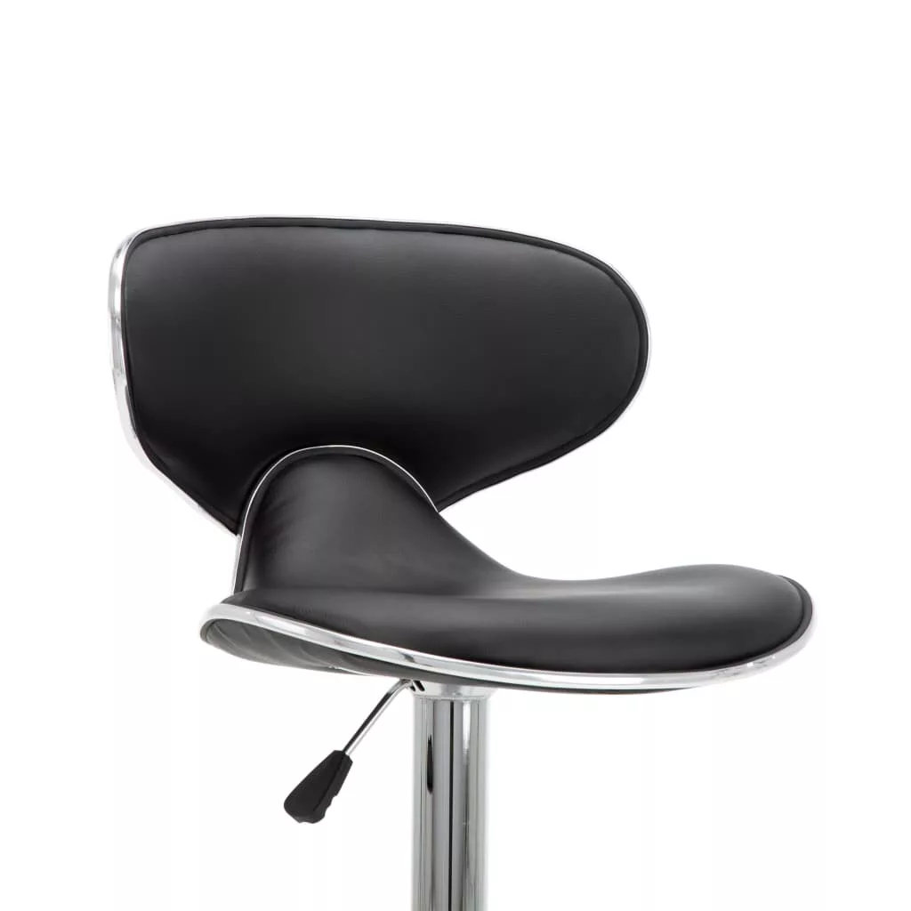 Ezek a bárszékek könnyen tisztítható műbőr kárpitozást kaptak az optimális kényelem érdekében. A krómozott acélváznak köszönhetően stabilak és masszívak. Puha habszivaccsal párnázott ülőfelületük és háttámlájuk, illetve lábtartóik révén a székek kiválóan alkalmasak a lazításra. A gázemelő mechanizmus segítségével a bárszékek magassága állítható. 360 fokban körbeforgathatóak, így használatuk még rugalmasabb.