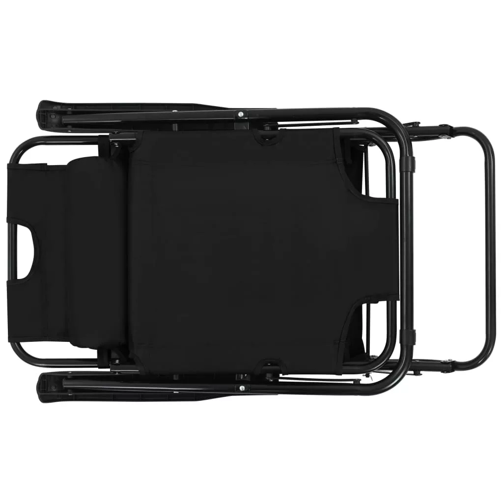PVC-bevonatú poliészter szövetből készült kempingszékek kényelmesek, tartósak és időjárásállóak. A keret erős porszórt acélból készült. Ezek a kerti székek 2 pozícióban állíthatóak, lehetővé téve, hogy kényelmesen üljön vagy feküdjön rajtuk. Az állítható háttámla és lábtartó és a puha fejtámasz további kényelem biztosítására voltak megtervezve.