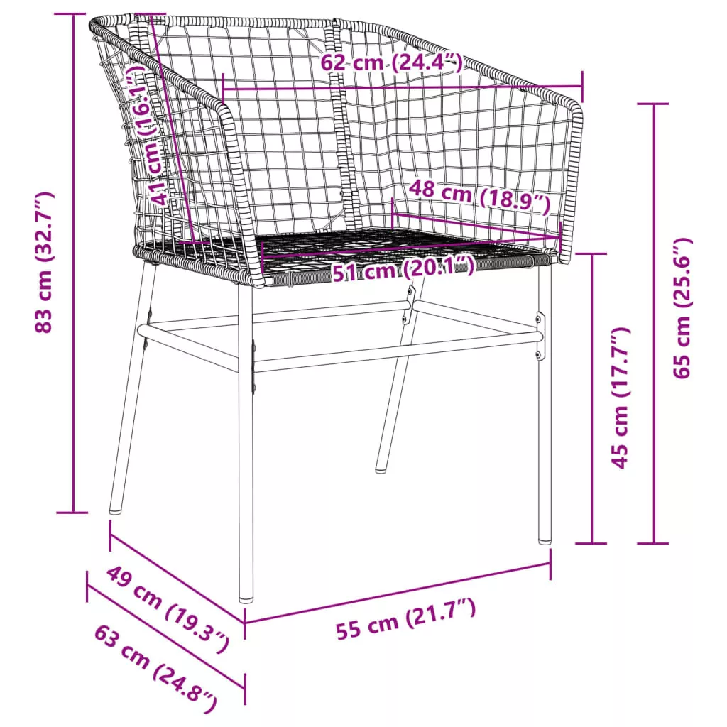 - Robusztus és stabil váz: A porszórt acél váz biztosítja, hogy a kerti bútor erős és stabil legyen a mindennapi kültéri használathoz.