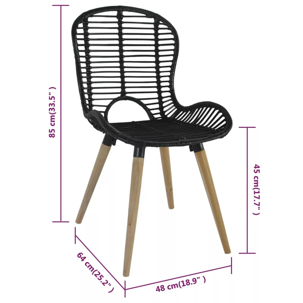 A természetes rattan ülő- és háttámlának köszönhetően a székek vízállóak és könnyen tisztíthatók. A fából készült lábak biztosítják ennek a bútorgarnitúrának a stabilitását és tartósságát, valamint vintage stílussal ruházzák fel. Ezek a székek bármilyen dekorációhoz illeszkednek, és könnyen összeszerelhetők. A szállítmány 2 db étkezőszéket tartalmaz.