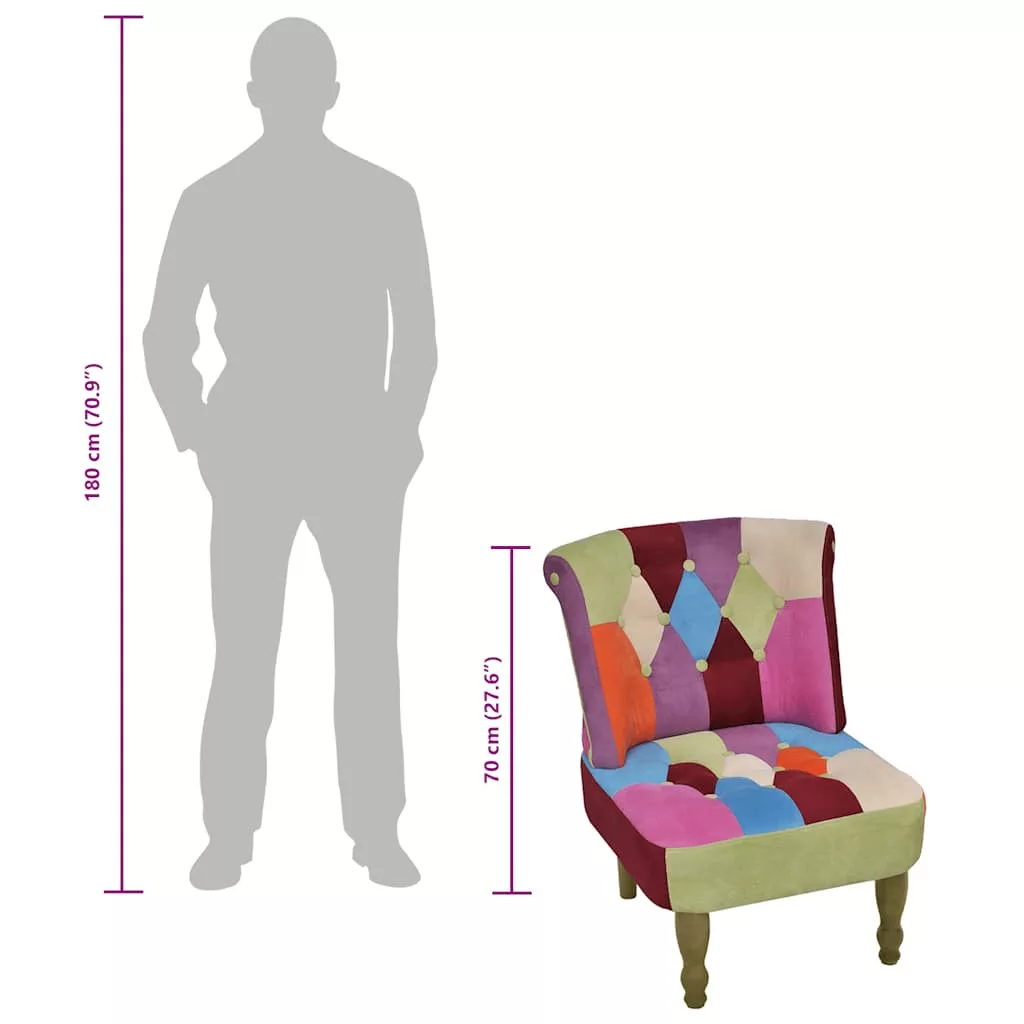 Különféle vidám színű foltokból lett összevarva, így ez a francia fotel remek díszítőeleme és bútordarabja lehet bármely hálószoba, társalgó, előszoba vagy nappali enteriőrjének. A különböző színek kombinációjának köszönhetően sokféle lakberendezési stílushoz illeszkedik és ragyogó hangulatot varázsol a lakótérbe. A favázat kényelmes habbal kitömött szövetanyag borítja, így a szék arra lett tervezve, hogy éveken át lehessen használni.