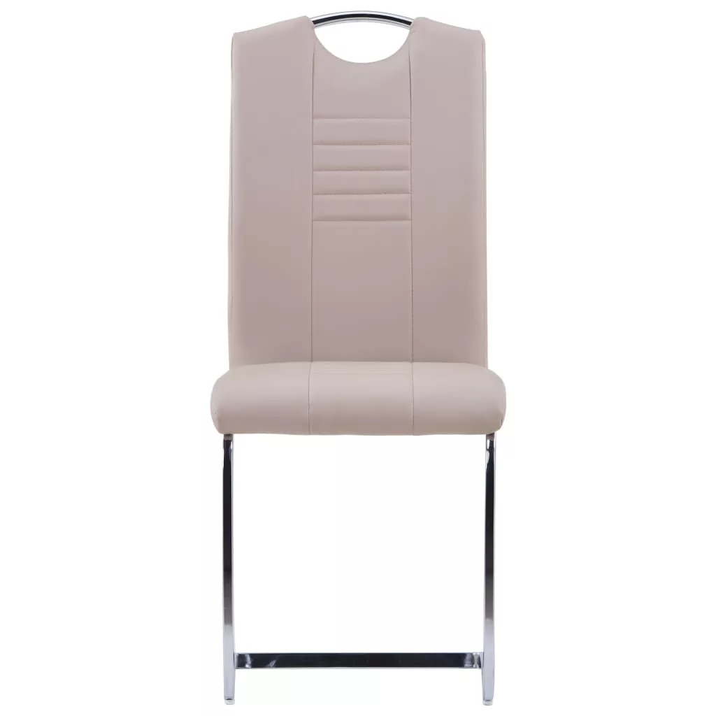 Az étkezőszékek tartós és könnyen tisztítható műbőr kárpitot kaptak, és vastagon lettek párnázva a maximális kényelem jegyében. Ergonomikus kialakításuk rendkívül kényelmes ülést biztosít. A krómozott acélváznak köszönhetően a székek felettébb masszívak és stabilak. Háttámlájuk fogantyúval lett ellátva, így kényelmesen és könnyedén mozgathatóak.