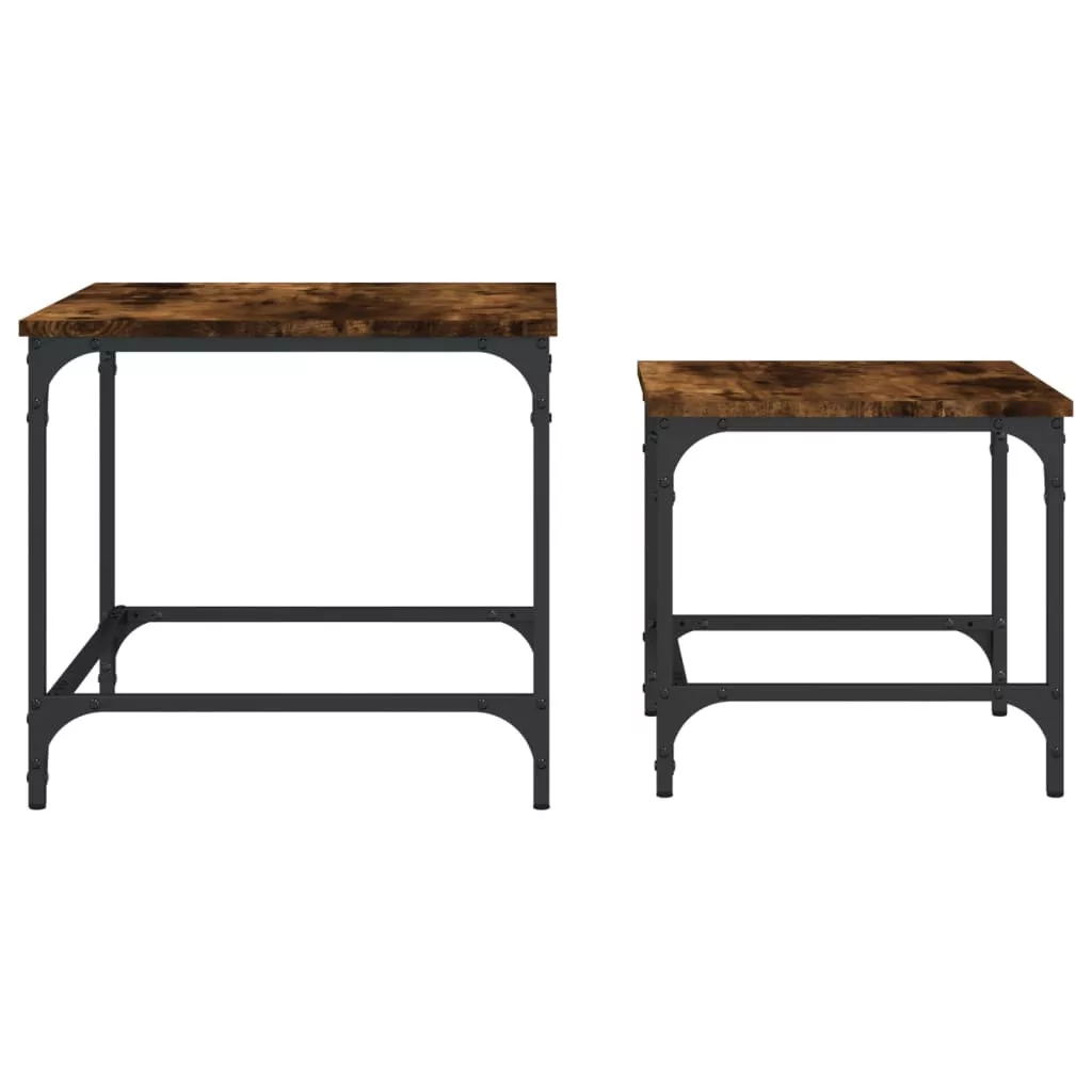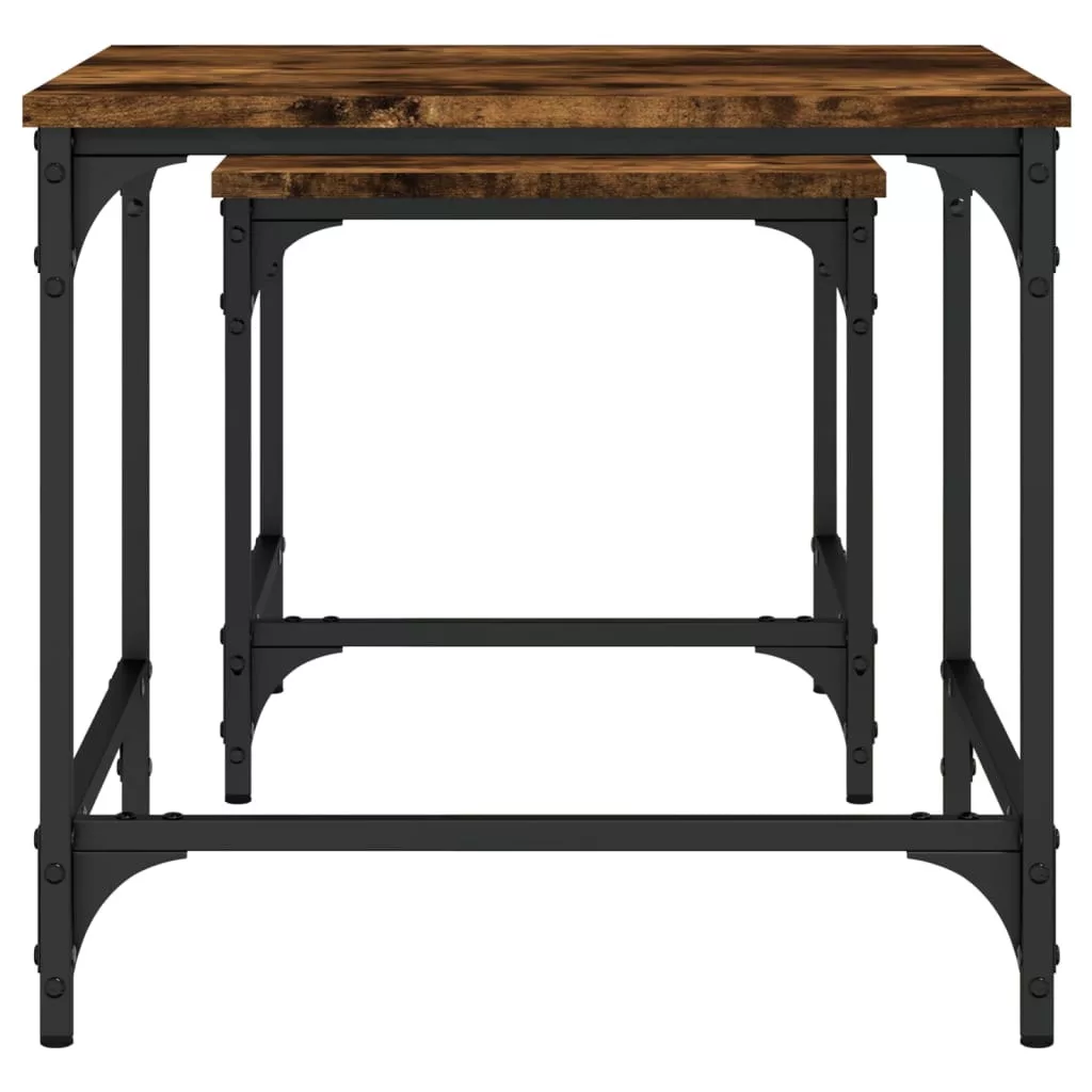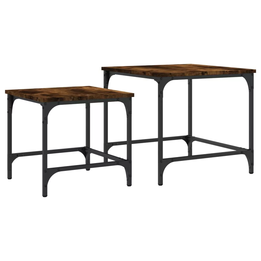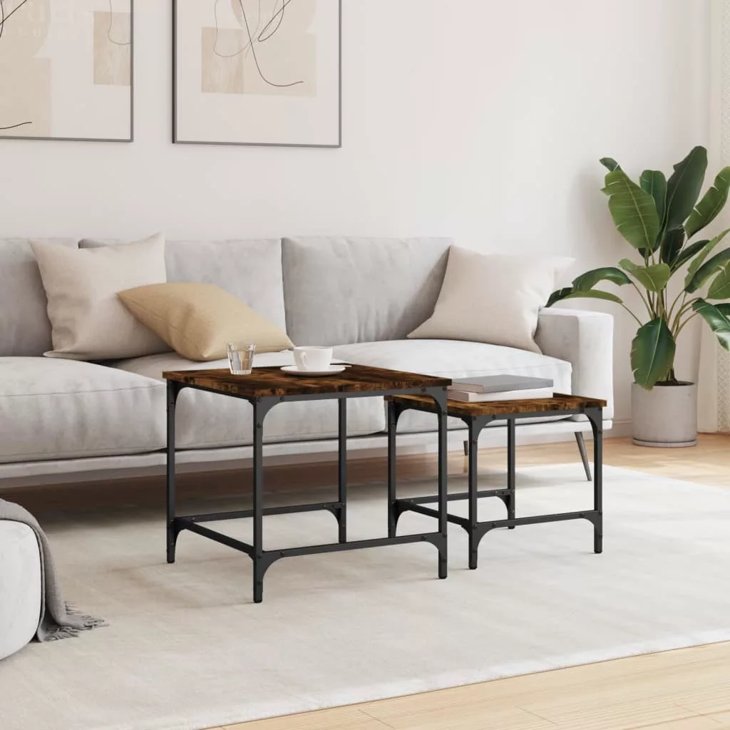 Ez a két egymásba tolható dohányzóasztal okos megoldás kis lakóterekbe vagy bármilyen korlátozott alapterületű helyiségbe. Ipari stílusú kialakításának köszönhetően ez a dohányzóasztalszett nappalija, hálószobája vagy irodája elegáns kiegészítője lesz.