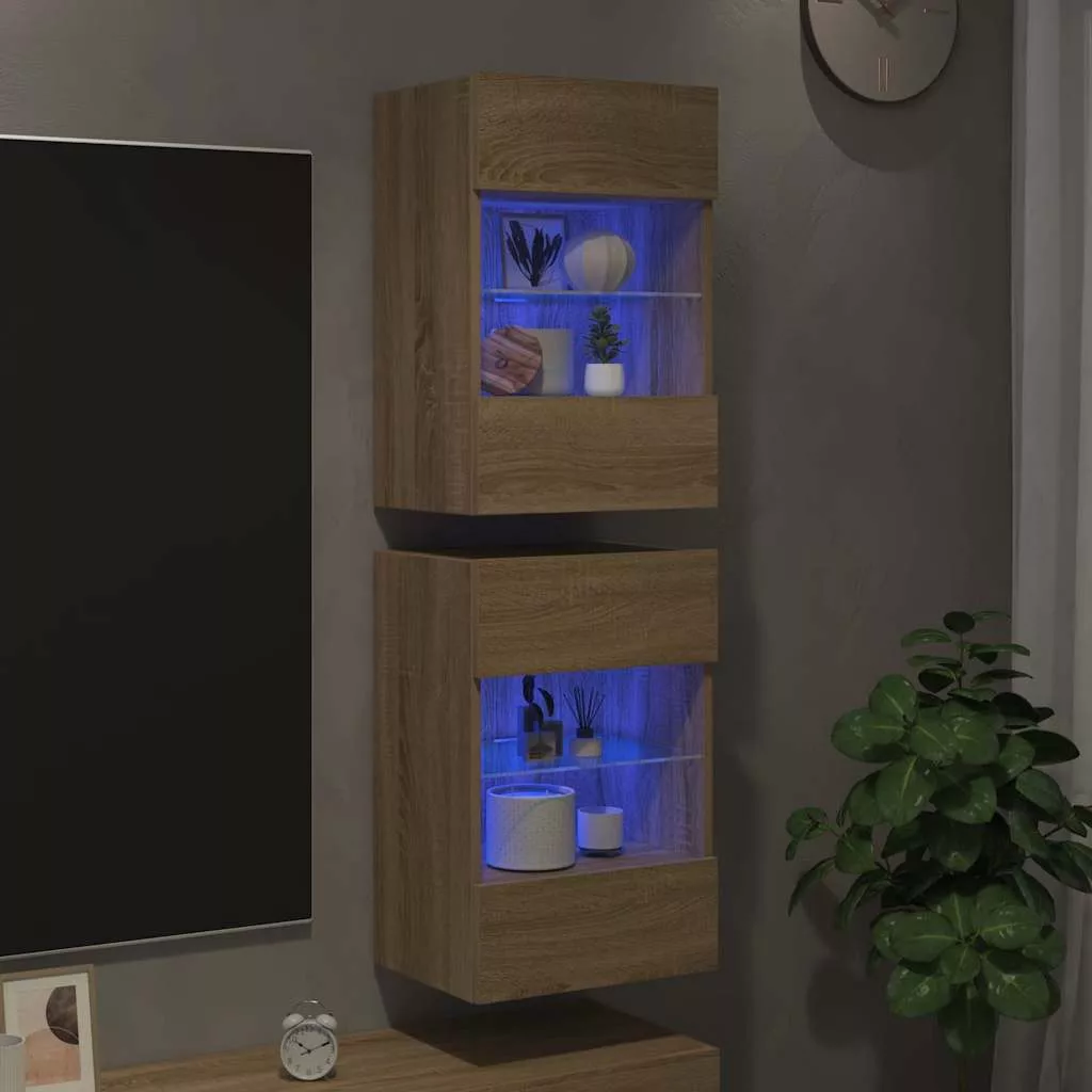 - RGB LED-világítás: A falra szerelhető média-szekrény élénk RGB LED-világítással lett felszerelve. A sokféle testre szabható menü segítségével egyszerűen megváltoztathatja a világítás színét, sőt, automatikus váltakozást is beállíthat. Ezek a LED-lámpák nemcsak a lebegő TV-egység modern megjelenését, de divatosságát is növelik.