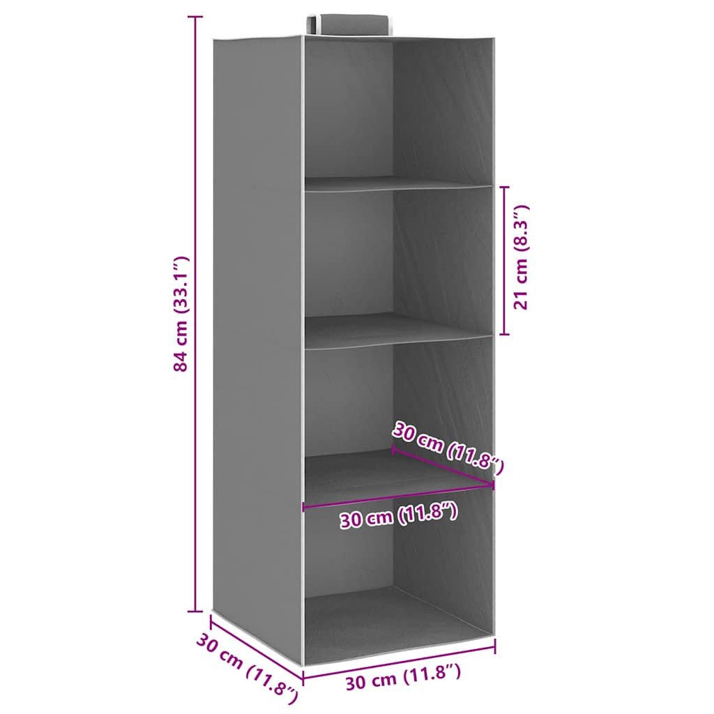 A függő szervezők 4-4 nyitott zsebében kitűnően látható, hogy mit rejtenek, és bőséges helyet kínálnak ruhák és kiegészítők, például pulóverek, törölközők, pizsamák, sapkák stb. tárolására. Emellett a szervező összecsukható. Rendkívül kompakt, és könnyen átvihető az egyik helyiségből a másikba.