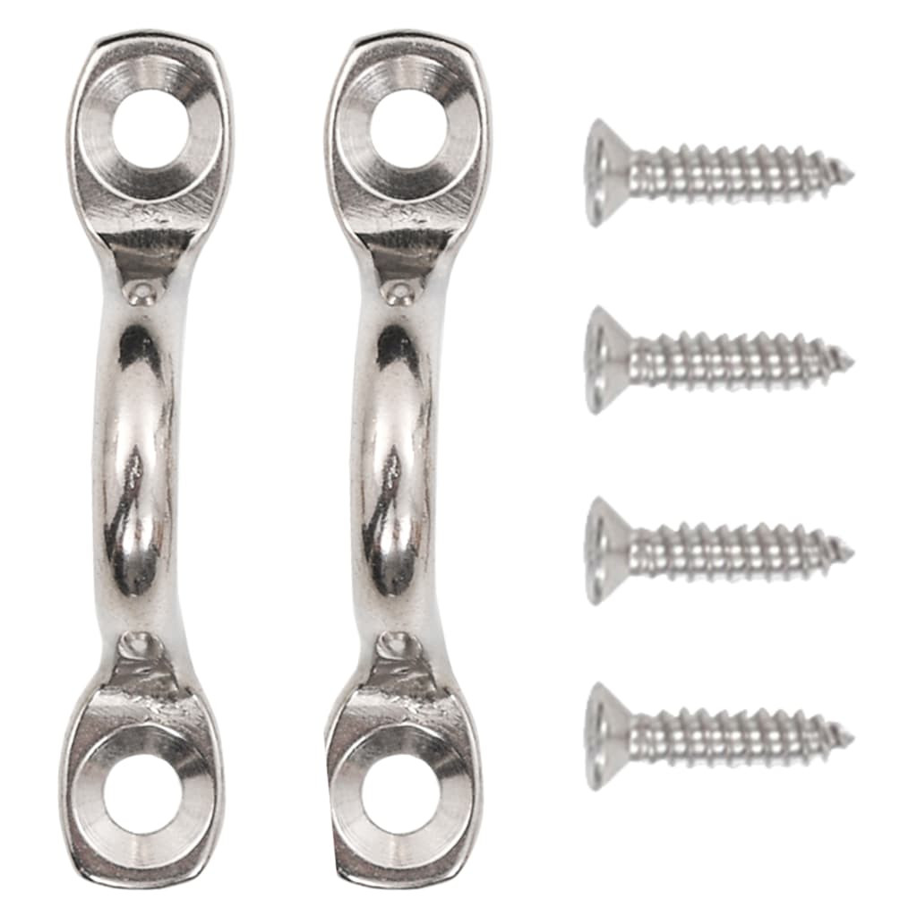 A szállítmány 2 db SS 304-es kapcsos hevedert, 4 db rögzítőcsavart és 2 db 316 Marine minőségű rozsdamentes acél kampót tartalmaz.