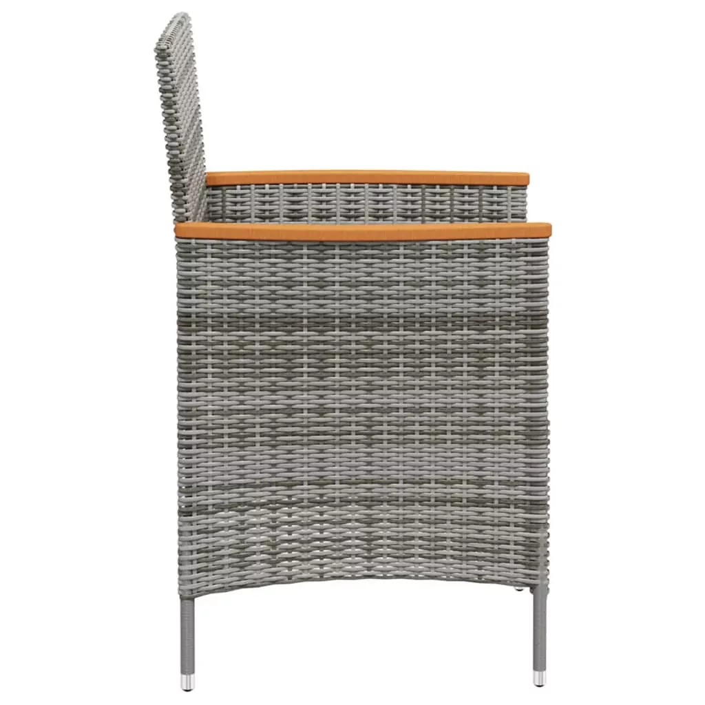 A polyrattannal bevont porszórt acélváznak köszönhetően a kültéri szék igazán stabil és könnyen tisztítható. A kartámaszok tömör akácfából, egy trópusi keményfából készültek, amely rusztikus bájt sugároz. Ez a szék az ívelt háttámlának és kartámasznak köszönhetően ergonomikusabb formával rendelkezik. Továbbá a vastag és puha párnák extra kényelmet nyújtanak ülés közben. A cipzárral ellátott párnahuzatokat könnyű levenni és kimosni. A könnyűsúlyú kialakításnak köszönhetően a kerti szék könnyedén áthelyezhető.