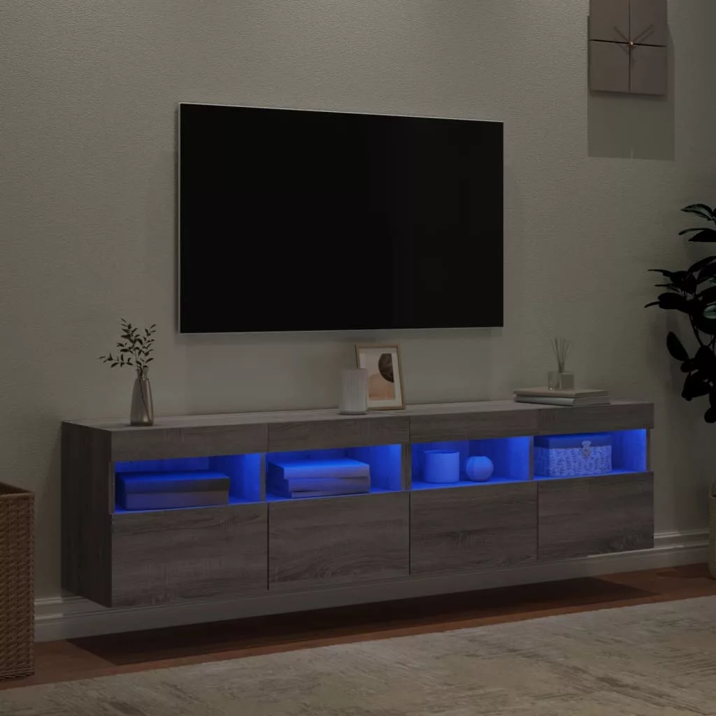 - RGB LED-világítás: A falra szerelhető média-szekrény élénk RGB LED-világítással lett felszerelve. A sokféle testre szabható menü segítségével egyszerűen megváltoztathatja a világítás színét, sőt, automatikus váltakozást is beállíthat. Ezek a LED-lámpák nemcsak a lebegő TV-egység modern megjelenését, de divatosságát is növelik.
