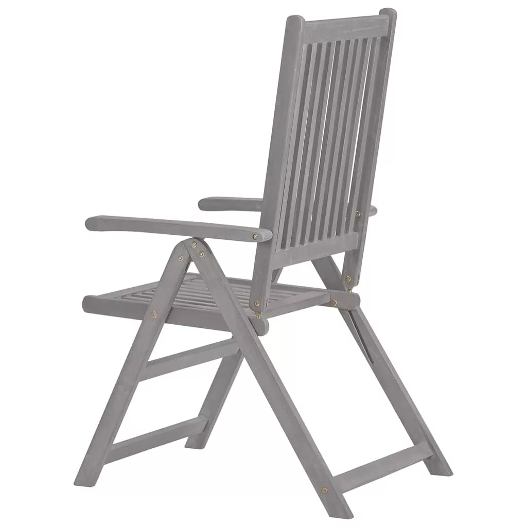 A tömör akácfából készült és szürke antikolt felületkezelést kapott széket különféle pozíciókba lehet állítani. Ellenáll az UV-sugaraknak és az időjárási viszontagságoknak, ezért hosszú évekig használható. A szék háttámlája 5 különböző pozícióba dönthető, így mindig megtalálhatja a legkényelmesebb helyzetet. Könnyű szerkezete megkönnyíti a szék mozgatását. A helytakarékosság érdekében a szék használaton kívül összecsukható.