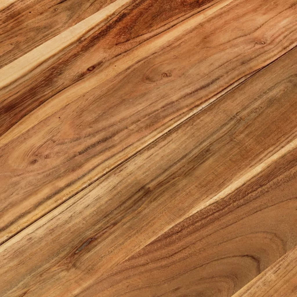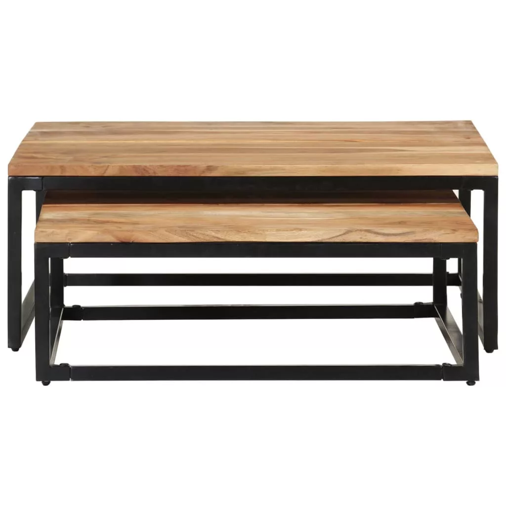 A dohányzóasztal tömör akácfából, egy sűrű erezetű keményfából készült. A gyönyörű kialakítású dohányzóasztal stabil, tartós és szemet gyönyörködtető. A tökéletes kivitelezésnek és a gyönyörű faerezetnek köszönhetően minden darab kissé különbözik a többitől. A fekete porszórt vastalp tovább növeli stabilitását és szilárdságát. A helytakarékosság érdekében a kis asztal a nagy alatt tárolható.