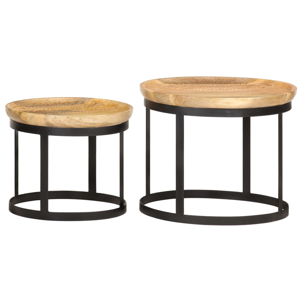 Ez a fa kisasztal kézzel készült tömör mangófából porszórt acélvázzal, így stabil és tartós. A kivitelezésnek és a gyönyörű faerezetnek köszönhetően minden bútordarab egyedi, és kissé különbözik a többitől. A kisasztal dohányzóasztalként, kanapéasztalként és nappali asztalként is használható. Könnyen tisztítható nedves ruhával.