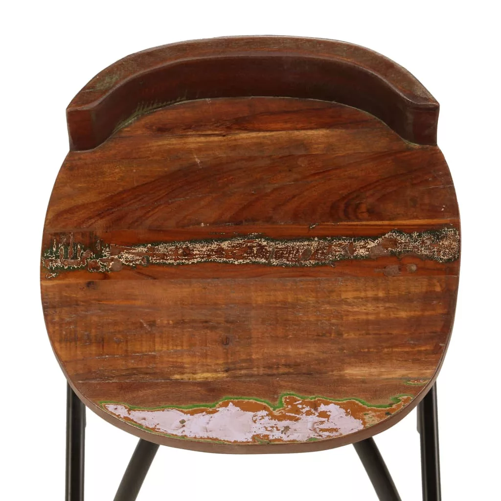 A bárszékek újrahasznosított tömör fából, robusztus acélvázzal készültek - rendkívül stabilak és tartósak. Az újrahasznosított fa lebontásra került régi épületek padlózatából, illetve födém- és tartógerendáiból származik. Különböző fafajtákból állhat, mint például a fenyő, tíkfa, bükkfa, tölgyfa, cédrusfa, mangófa vagy akác. Az újrahasznosított faanyag megőrizte e változatos fafajták jellemzőit. Az újrahasznosított fa már érlelt és száraz, ezáltal nem megy össze és nem vetemedik meg. A háttámlák és lábtartók révén a székeken még kényelmesebb ülés esik. A gyártási folyamat minden lépését a legnagyobb gondosság jellemezte az újrahasznosítástól kezdve a csiszoláson át a festésig és lakkozásig. A garnitúra összeszerelése egyszerű. A szett két bárszéket tartalmaz.