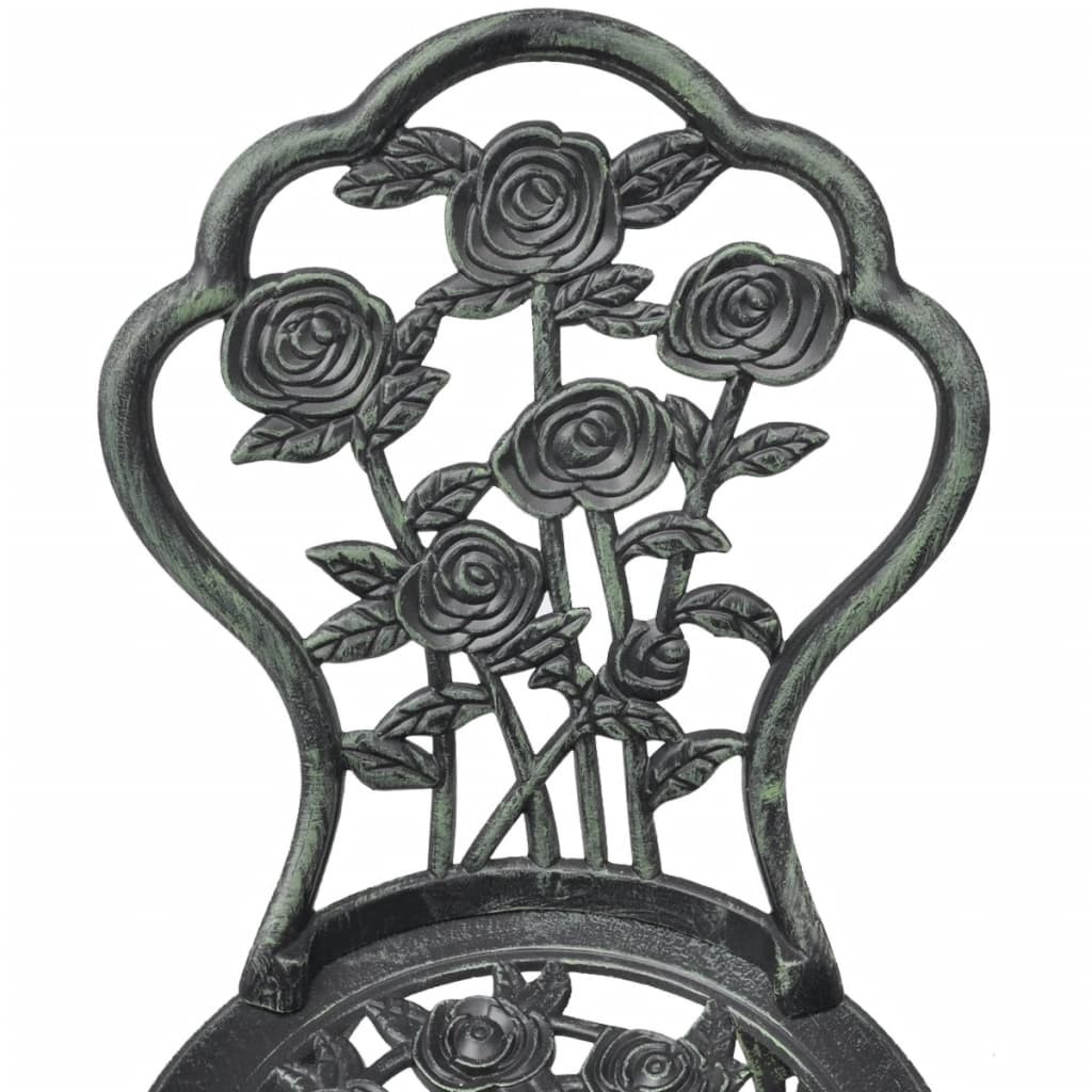Ez a bisztró szett kiváló minőségű öntött alumíniumból készült, így időjárásálló és rendkívül tartós. Öntött vas lábai tovább növelik a szett szilárdságát. Kidolgozott virágmintájának köszönhetően romantikus hangulatot csempész bármely kertbe, verandára vagy melegházba.