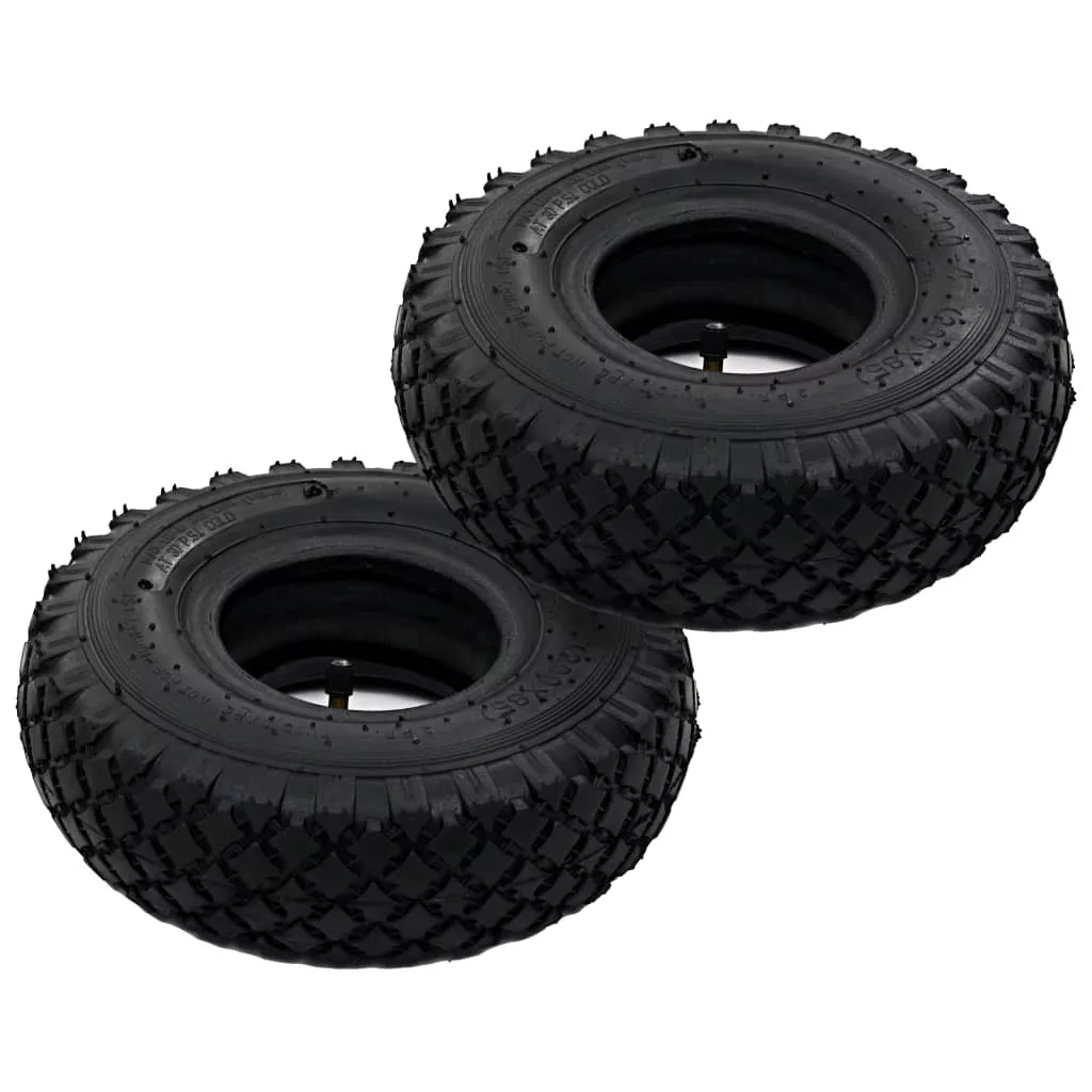 Ez a két gumiabroncsból és két belső gumiból álló garnitúra hasznos pótalkatrész molnárkocsihoz, kézikocsihoz, szervizkocsihoz, árumozgató kocsihoz, talicskához stb.