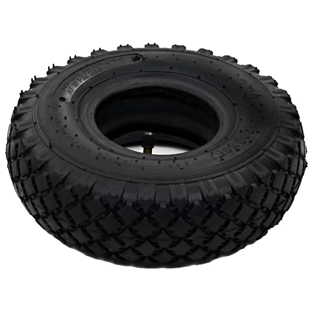 A gumiköpenyek és a gumibelsők tartós, kopásálló gumiból vannak. Az abroncsok speciális bordázata nagyobb sebességnél extra tapadást biztosít. A gumibelső segít a guminyomás fenntartásában, illetve a defekt megelőzésében. A gumiköpeny + gumibelső tartalékkészlet ideális lakossági, kereskedelmi és ipari felhasználásra - közúti használatra viszont nem alkalmas.