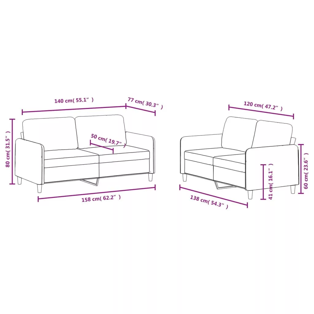- Kétszemélyes kanapé (140 cm):