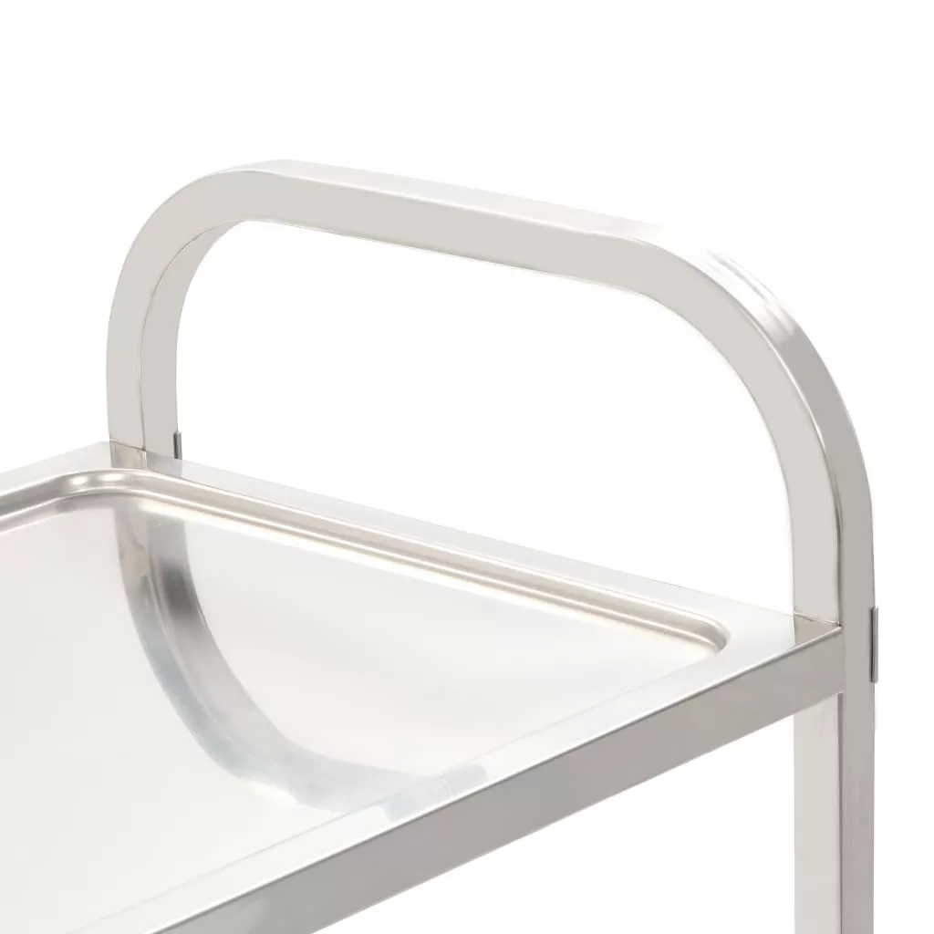 Ez a nagyméretű zsúrkocsi bőséges helyet kínál az ételek és italok optimális felszolgálásához. A rozsdamentes acélváznak köszönhetően a szervizkocsi még teljes terhelés alatt is stabil és masszív marad. Zökkenőmentes görgőinek hála erőlködés nélkül, halkan mozgatható. Emellett két görgő fékkel is fel lett szerelve, így megakadályozva az elgurulást, ami azt jelenti, hogy akár szerszámok vagy egyéb napi használatban lévő háztartási eszközök tárolására is alkalmas.