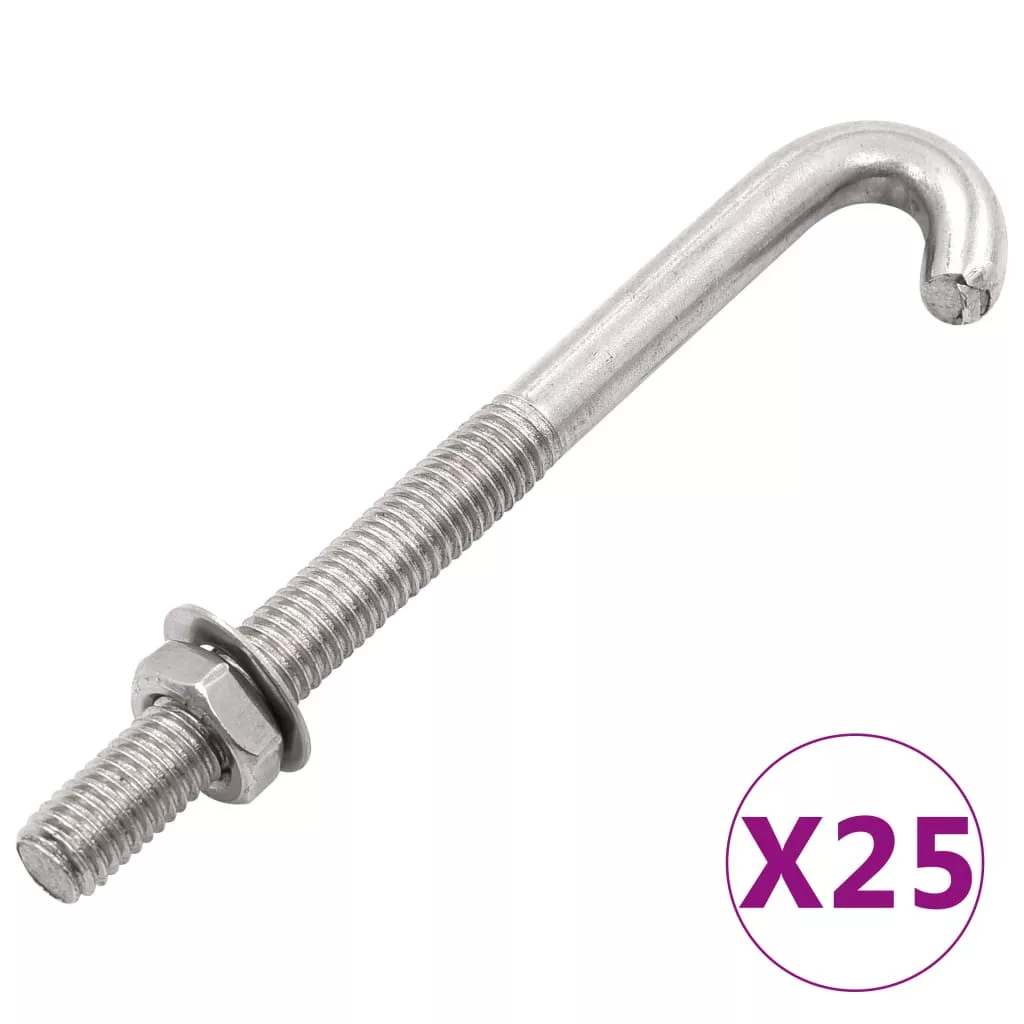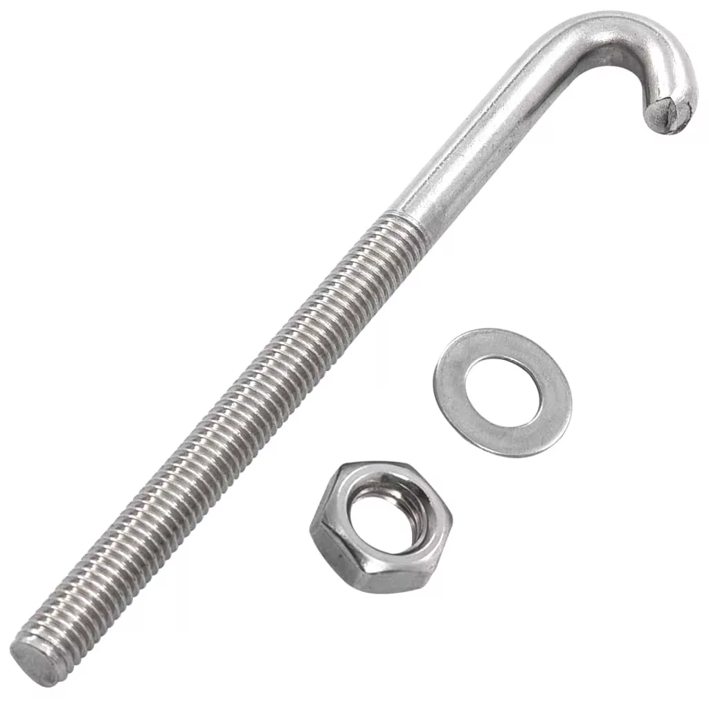 A rozsdamentes acélból készült csavar ellenáll a rzozsdának, biztosítva ezzel a hosszú távú felhasználást. A szállítás 25 szettet tartalmaz egy dobozban. Mindegyik szett egy J-csavart, egy hatlapú anyát és egy alátétet tartalmaz.